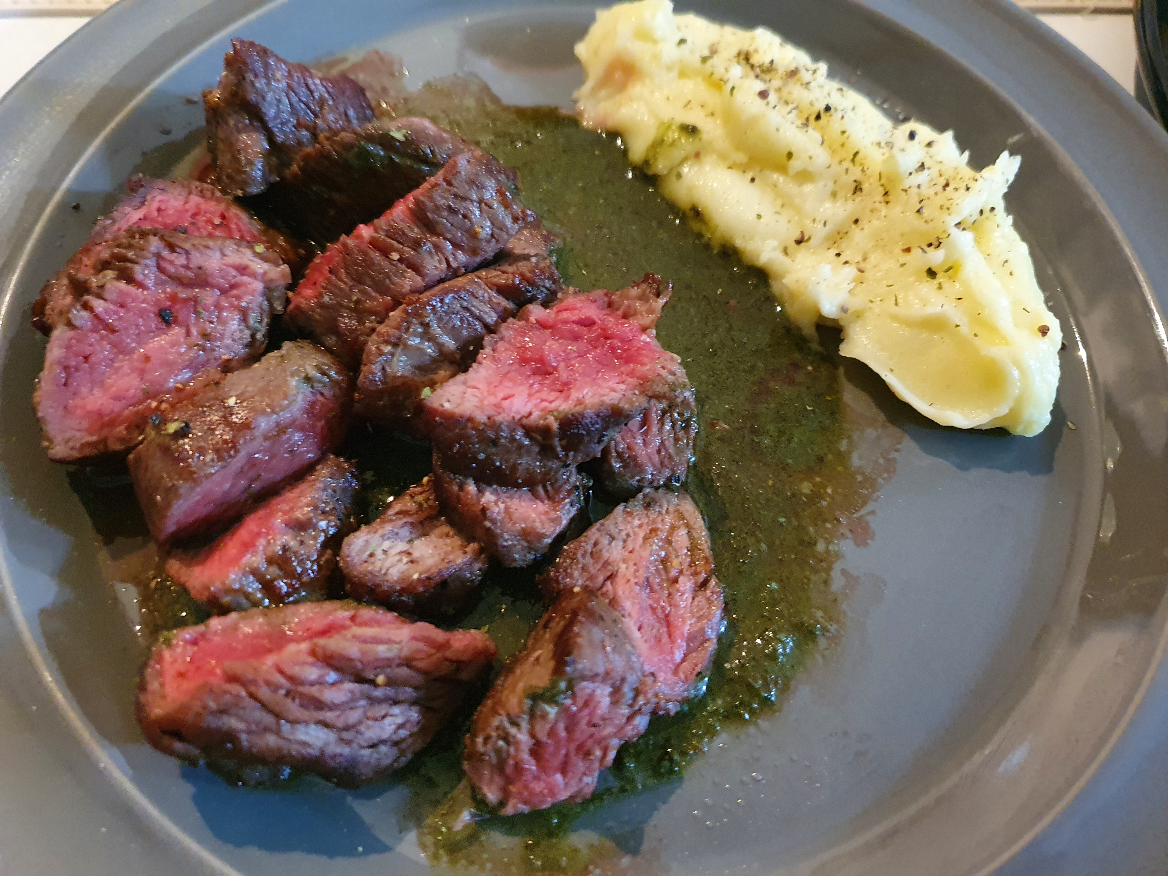 고기가 굉장히 부드럽다. 19,800원이라는 가격이 퀄리티가 낮은 고기가 들어있을 것 처럼 느껴지지만, 전혀 그렇지 않았다. 시즈닝을 잘해서 구우니 고기는 육즙도 많고, 부드러웠다. 나름 잘 구웠기 때문이라 자부하지만, 퀄이 나쁜 고기가 아니었기 때문에 또 가능했다고 생각한다. 가격대에 비하면 완전 추천추천.