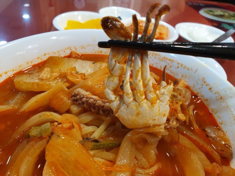 국물이 왜이렇게 맛있나 싶었는데 게가 들어가있었다. 역시 해물 짬뽕 국물엔 게가 없으면 섭섭하다. 갑각류가 들어가는 국물이 실패하는걸 본 적이 없다.