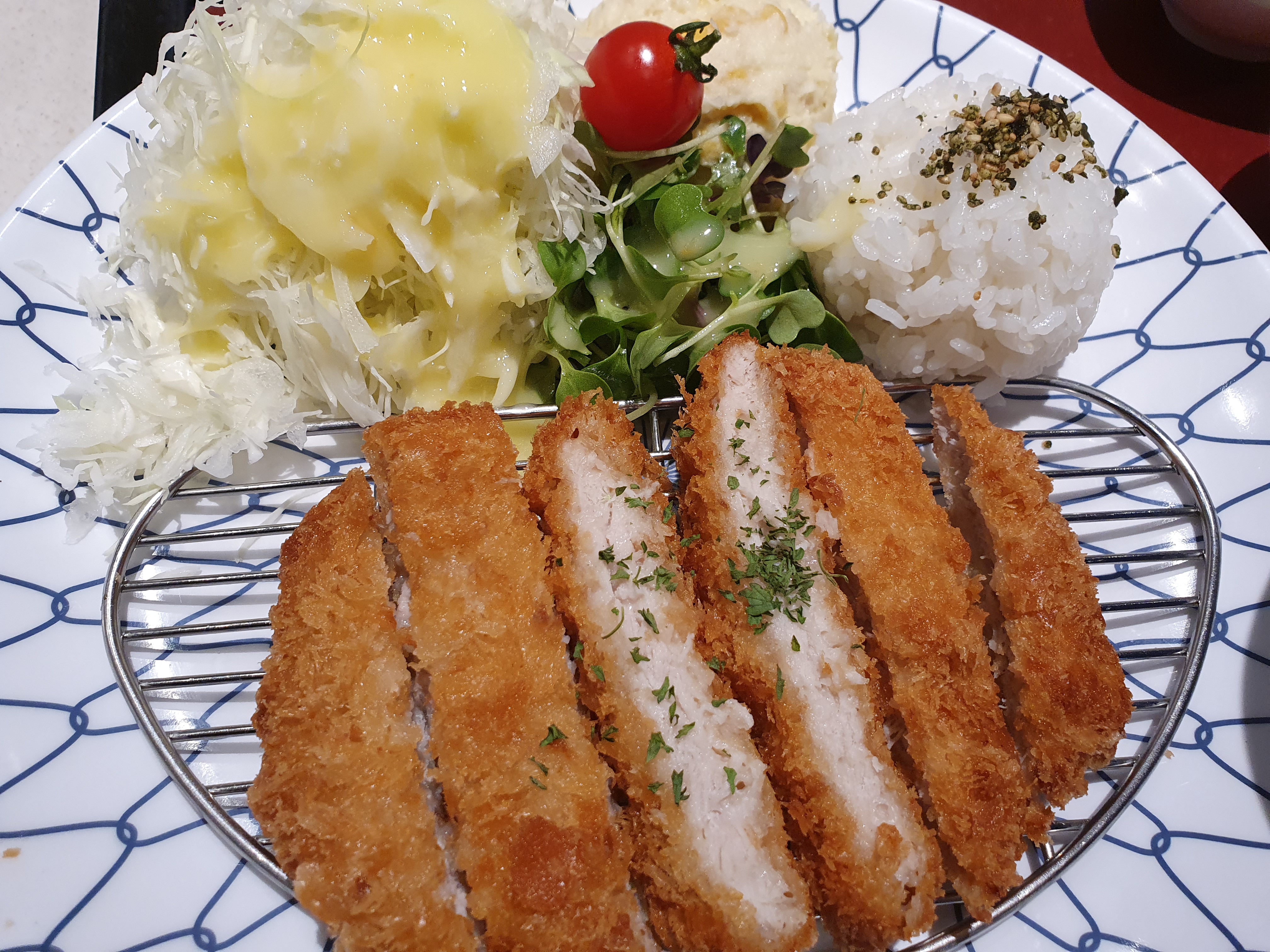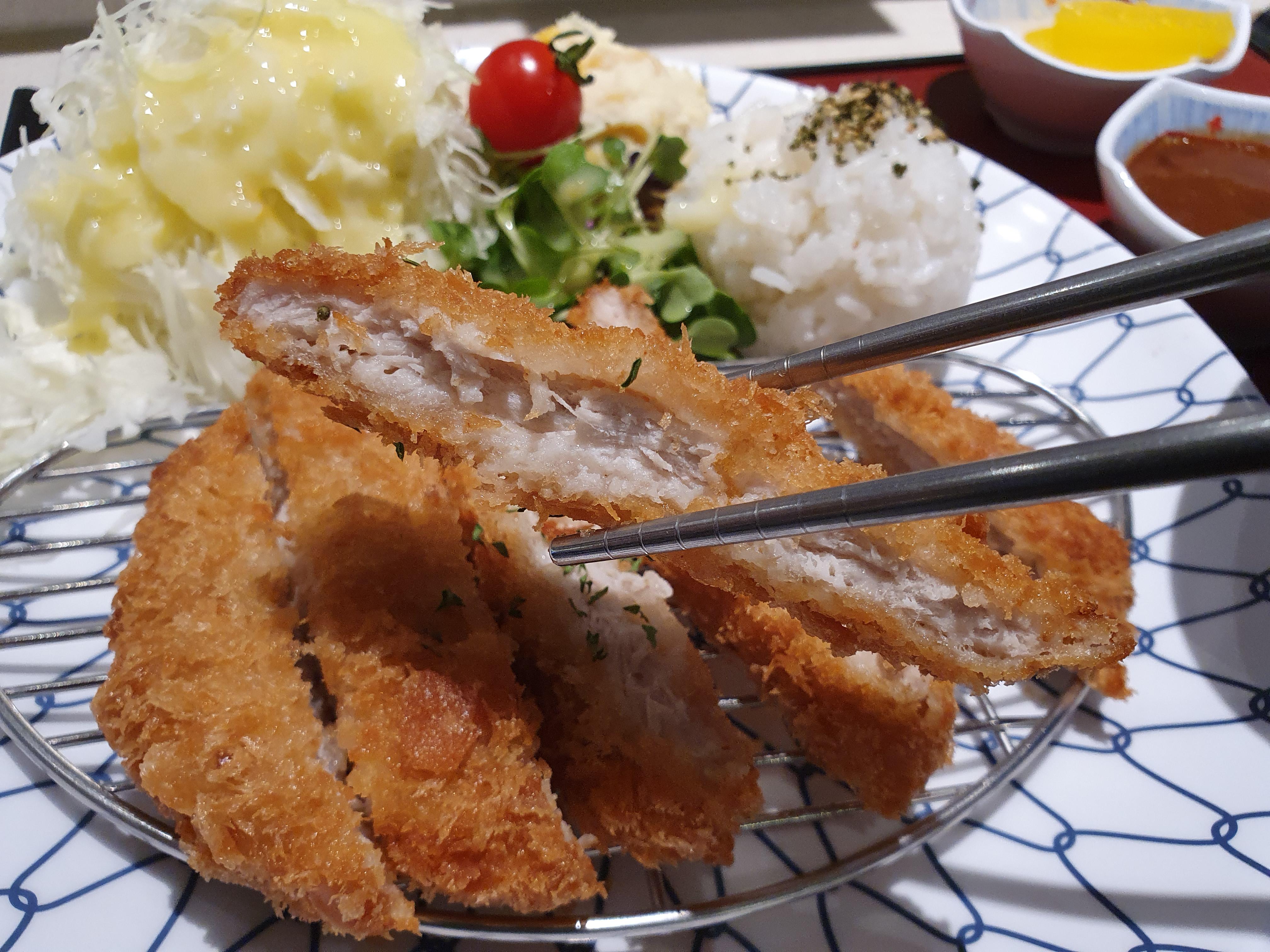 샐러드 종류가 많아서 오히려 좋았다. 가장 많은 돈까스 구성은 샐러드 하나, 밥 조금, 돈까스 끝인 경우가 많은데, 감자샐러드 포함 3개의 샐러드가 나오니 다양함을 추가해준 느낌!