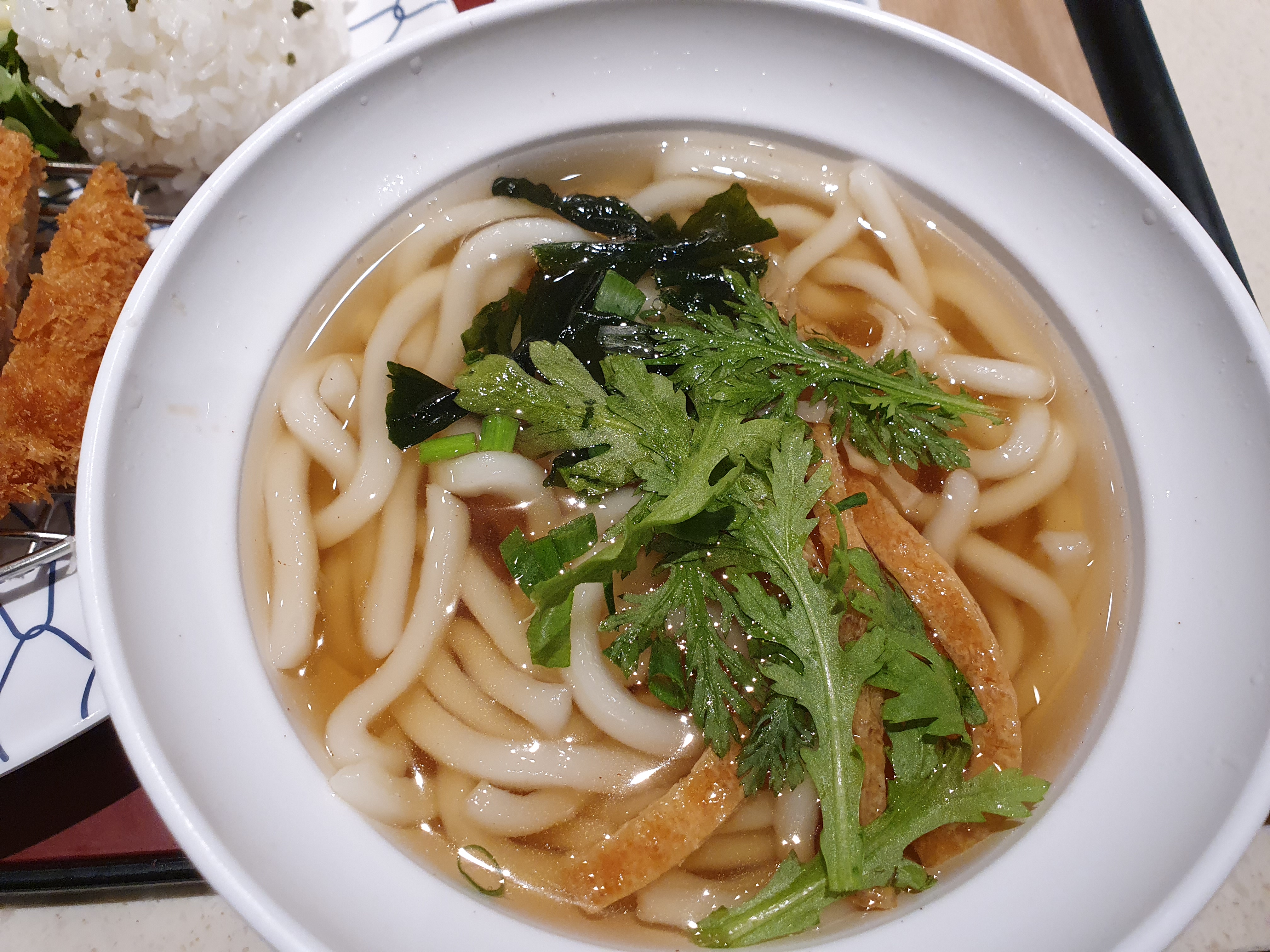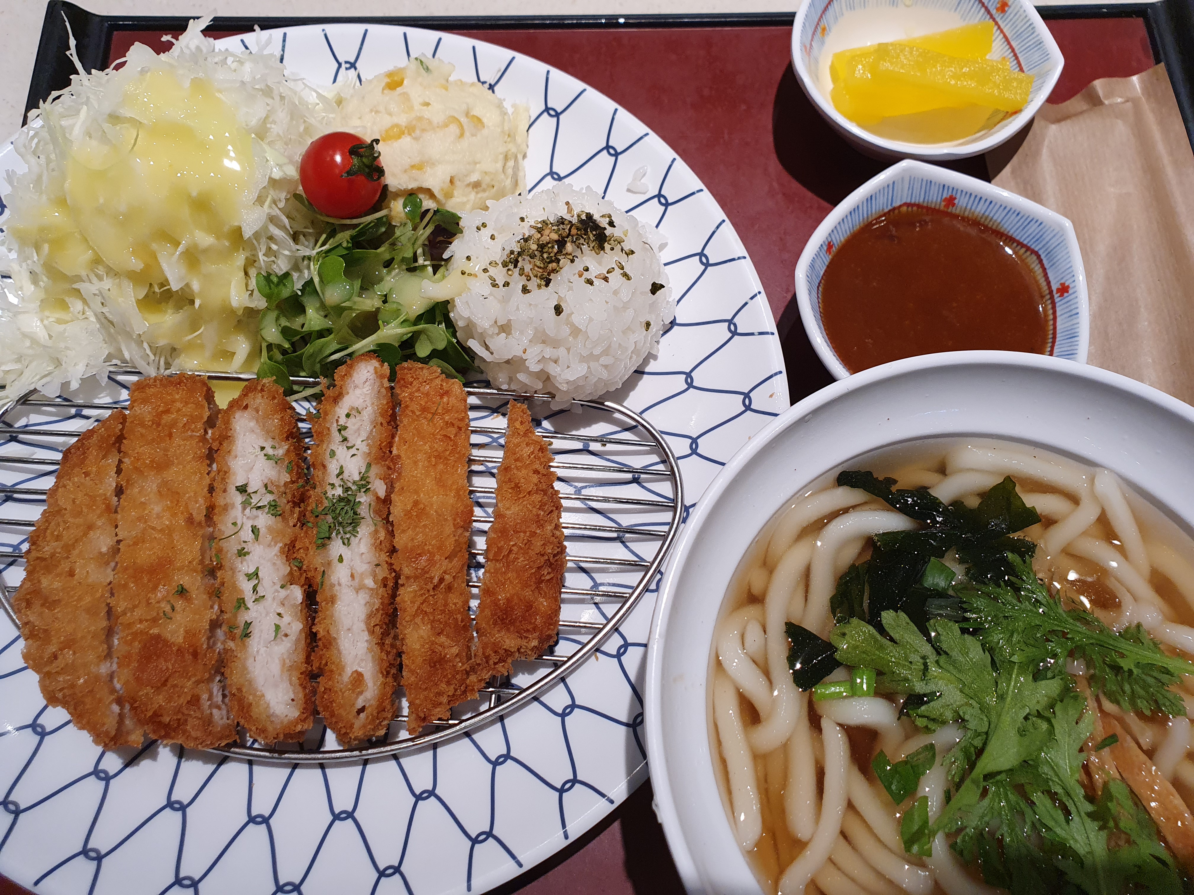 그리고 나의 돈까스와 우동. 가장 기본이 되는 조합이면서도 또 평균이상으로 맛있는 조합이다. 돈까스는 큼직하면서, 우동은 적지 않다.