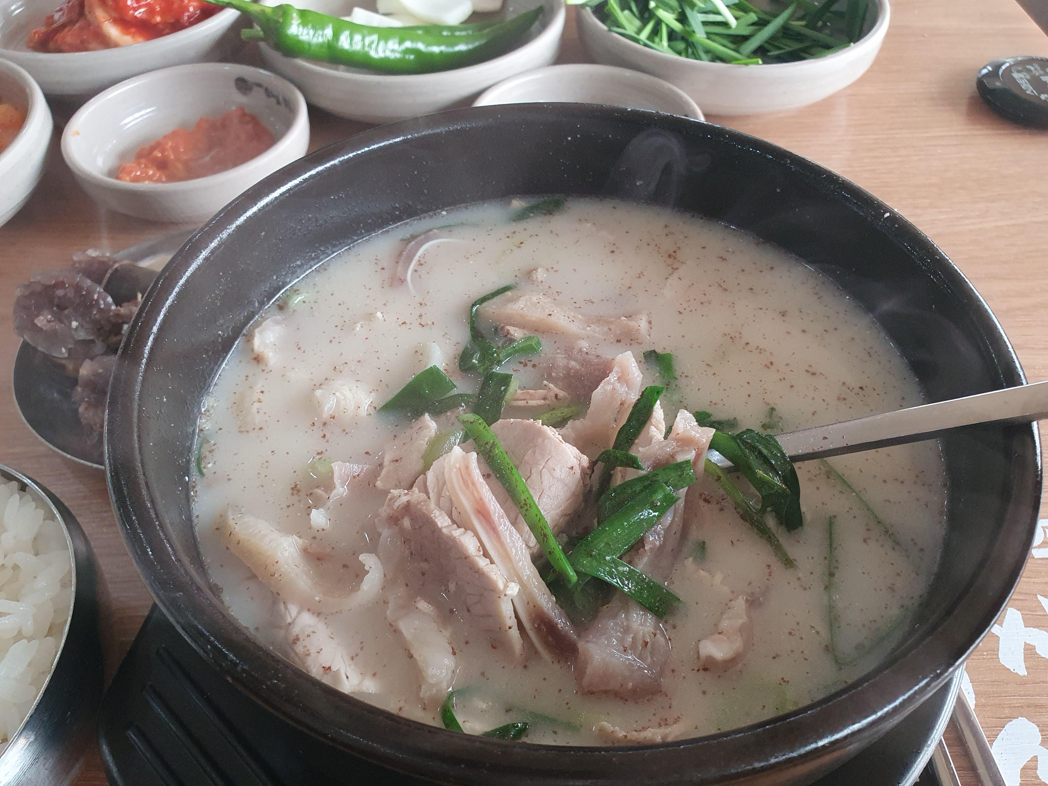 배가고파 순대국 특으로 주문! 팔팔 끓고 있는 커다란 뚝배기가 밥상에 올라왔다.