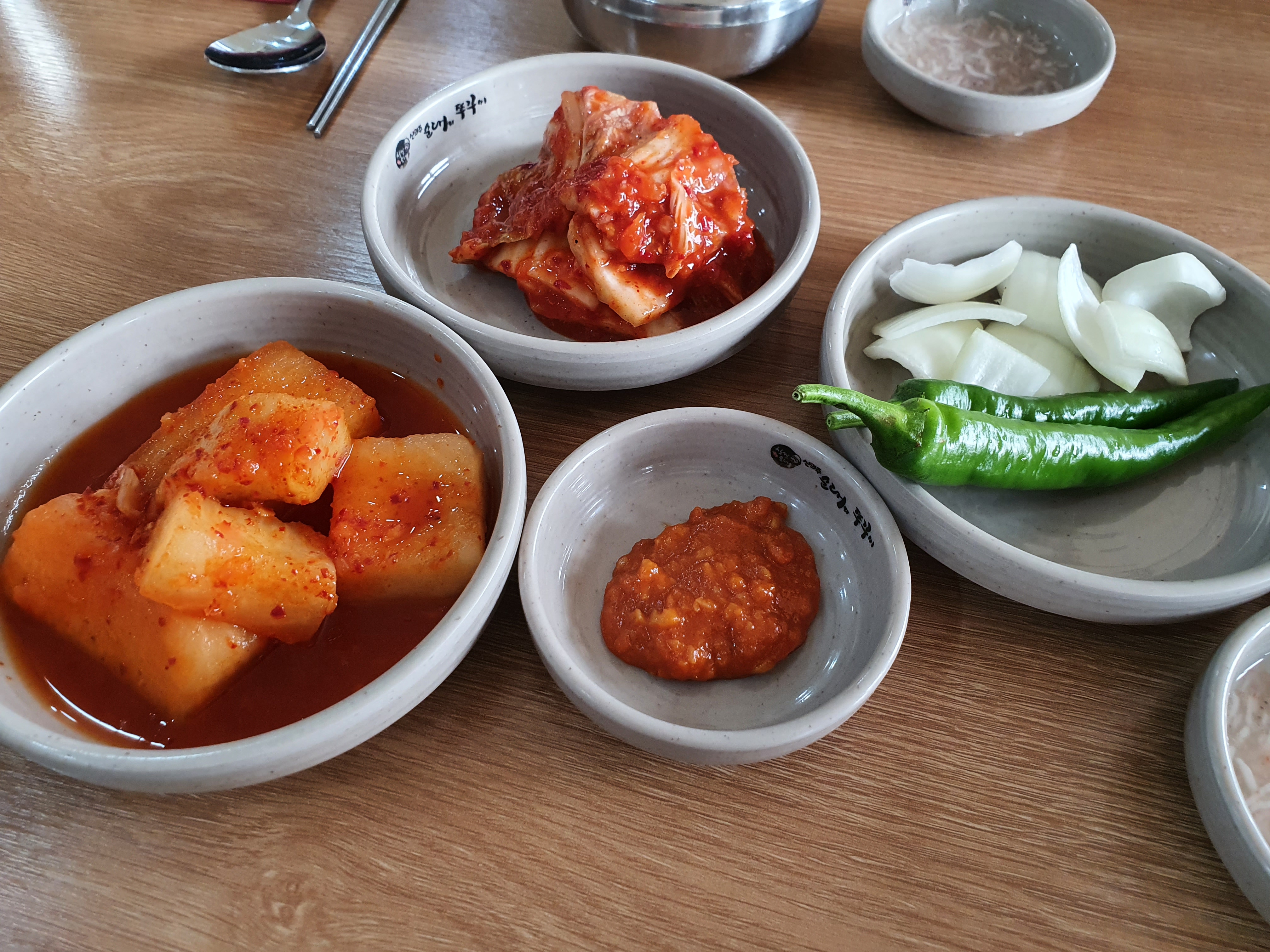 밑반찬은 단순한 순대국집과 같다. 깍두기, 포기김치, 양파와 아삭이 고추, 쌈장 등. 모두 내가 좋아하는 구성이다.
