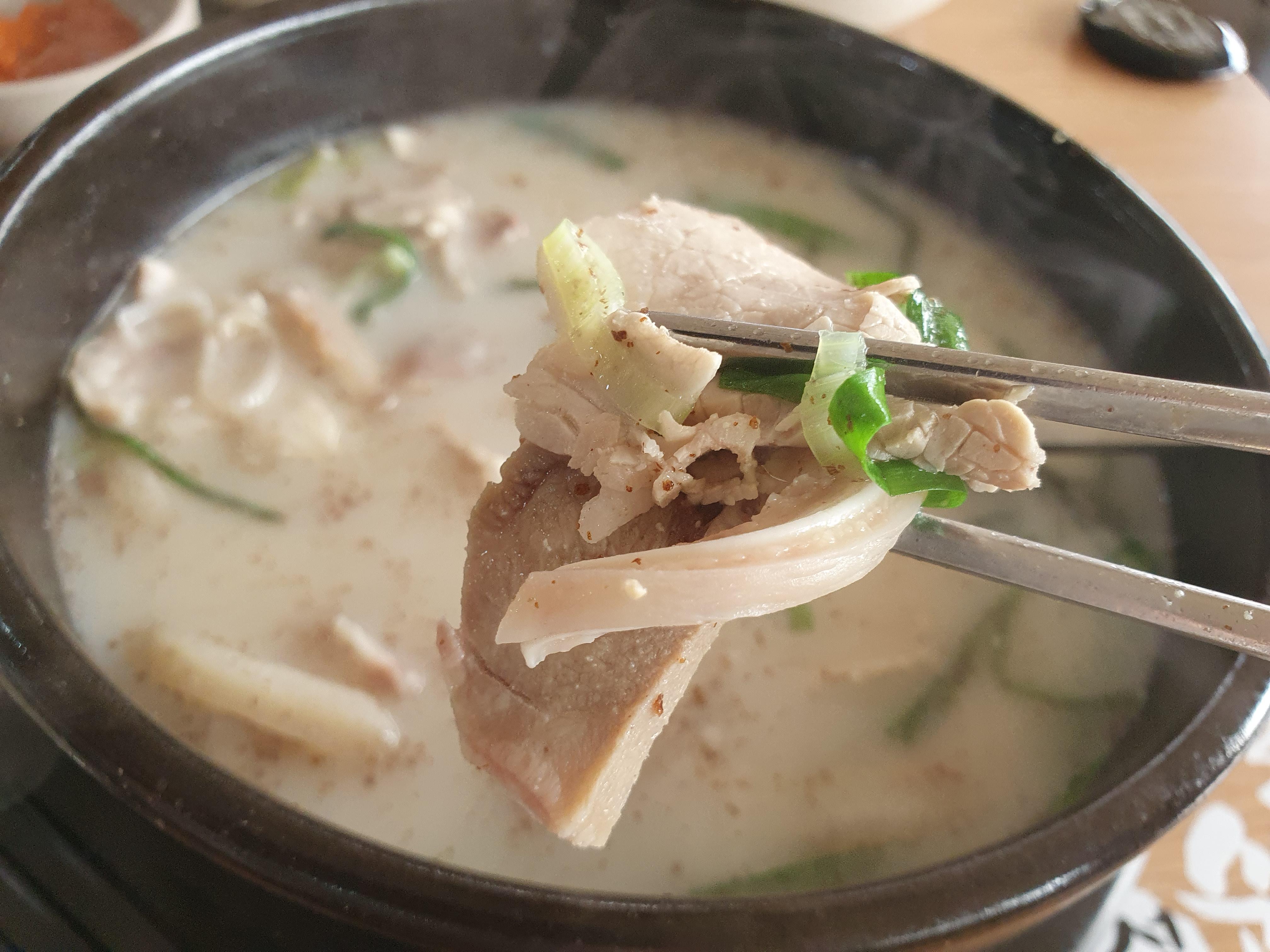 잘익은 머릿고기들이 젓가락에 집혀 올라온다. 순대 머리고기를 싫어하면 주문할때 미리 말해야 할듯? 꽤 많이 들어있어 국물만 많은 순대국이 아니다 ㅋㅋ