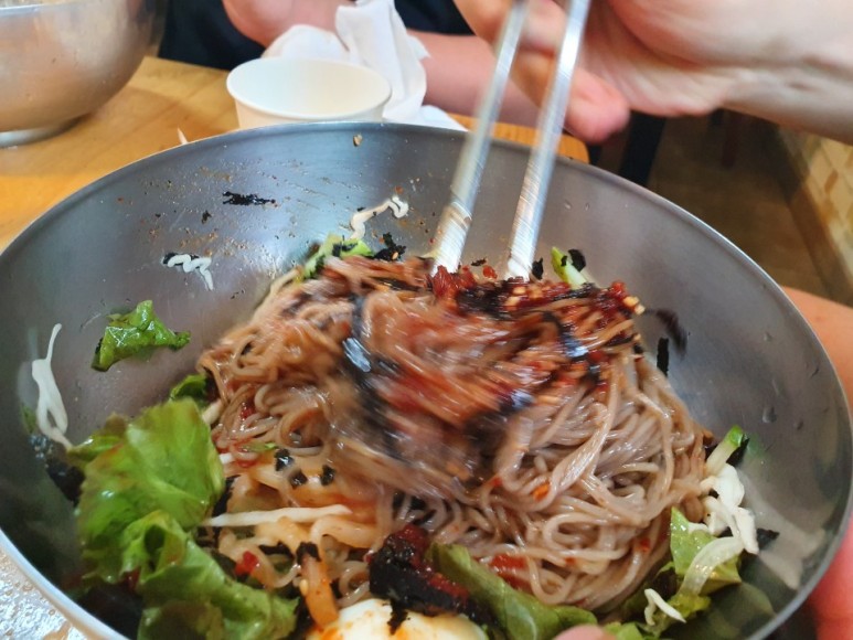 야무지게 비볐으면 이제 먹어준다. 확실히 맛은 꿀맛이다. 원래 막국수를 막 먹고 싶은, 맛있어 죽겠다! 이런 느낌으로 먹어본적이 없는데.. 진짜 막국수 맛집이라 할 수 있을 만큼 맛있다.