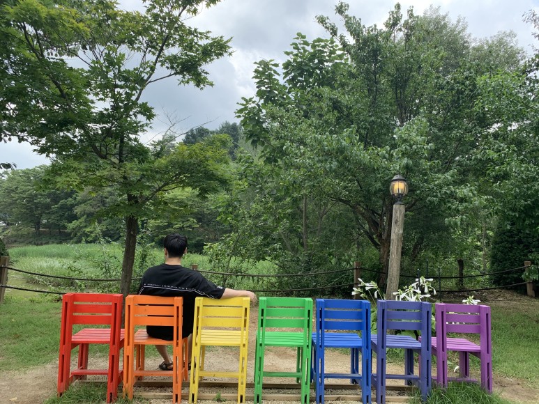 정원안에 또 다른 실내가 있다. 작은 오두막 형식의 '룸' 오두막은 이미 알콩달콩 연인들이 자리를 차지하고 있다.