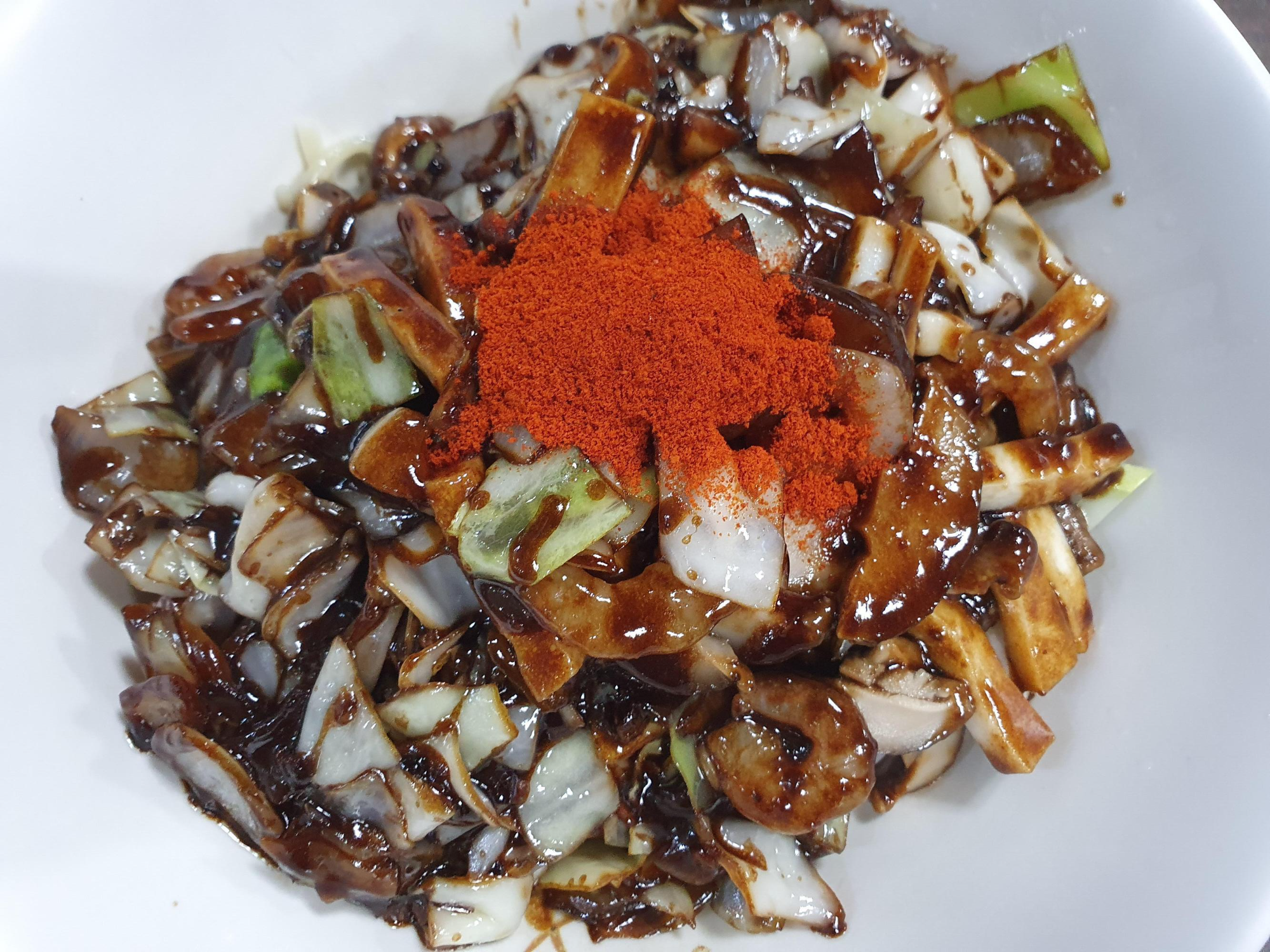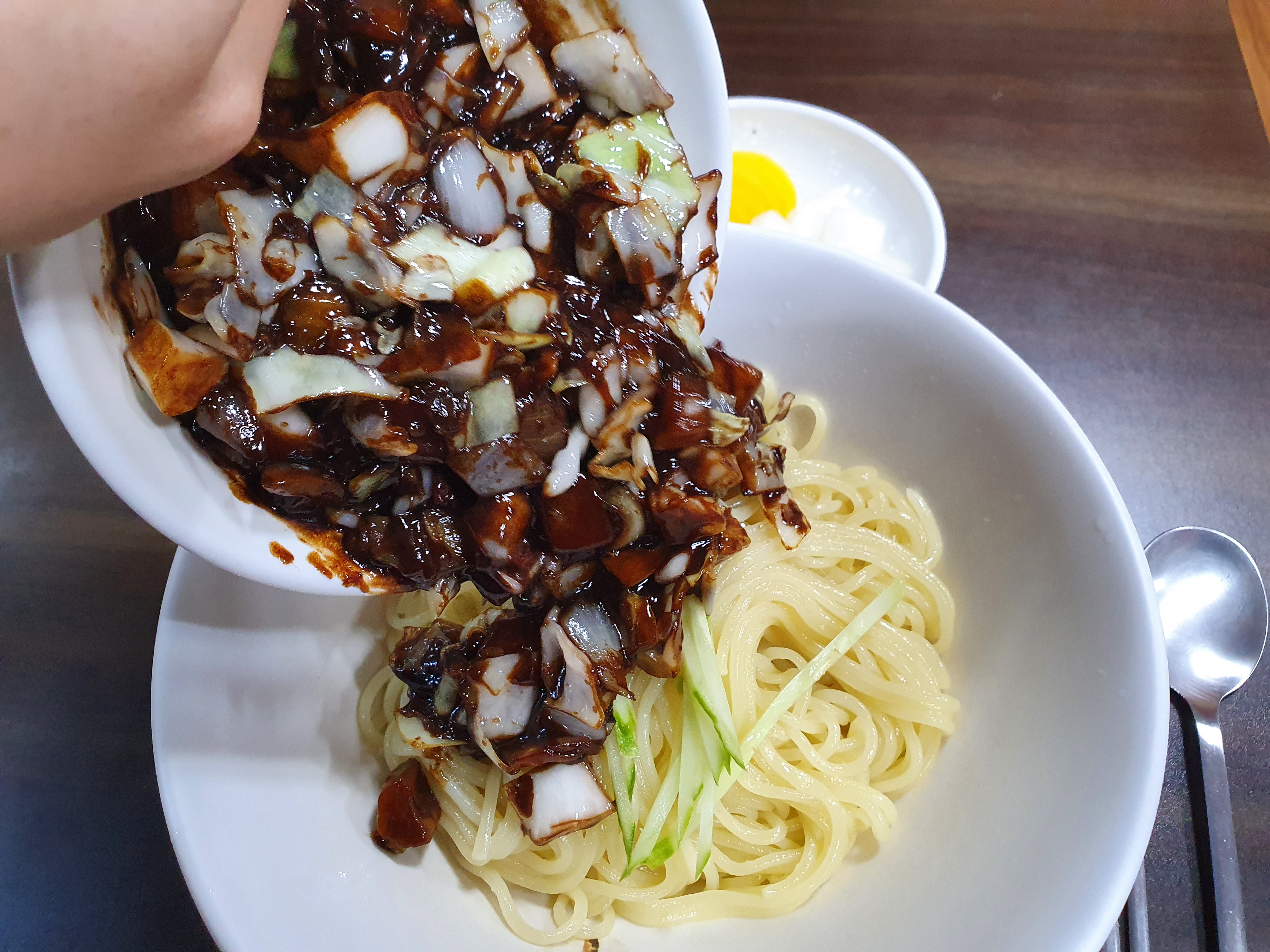 먹을 준비가 끝났다면, 짜장을 부어준다.