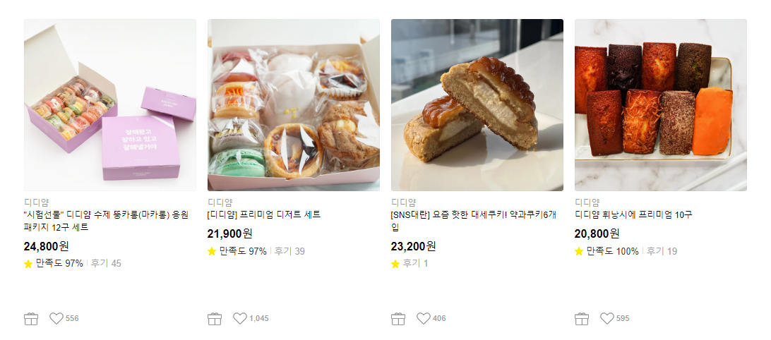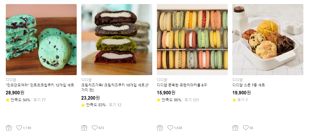 '디디얌'이라는 가게에서 만드는 마카롱인데, 뚱카롱이 기본 컨셉인 것 같다. 카카오톡 선물하기에 디디얌을 검색하려하면 '디디얌 뚱카롱'이 자동완성 검색어로 뜰만큼 사람들이 그렇게 인식하고 있다.