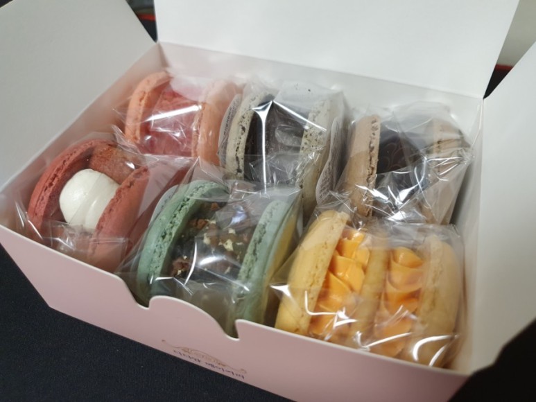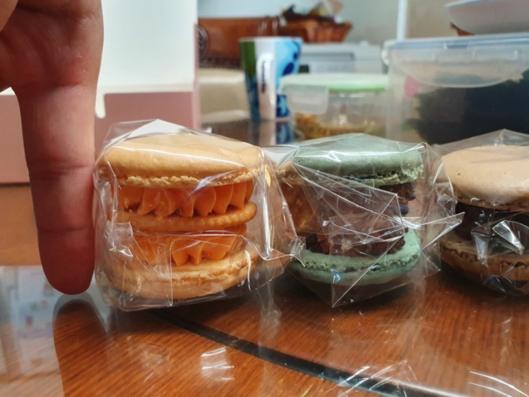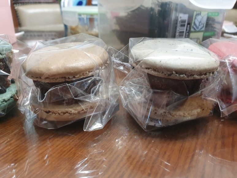 내가 손이 작은편이지만.. 그래도 남자 손가락 검지 2마디 높이면 정말 뚱뚱하다고도 할 수 있지 않을까? 한입에 완전 꽉 차는 그런 마카롱은 처음이란 말이지? 입안 가득 달콤함이 퍼질땐 이게 행복인가 싶을 정도로 기분이 좋았다.