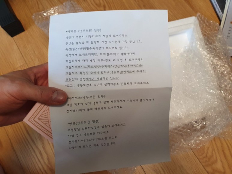 그리고 안내문이 들어있다. 역시 사람은 메뉴얼을 꼭 읽어봐야한다... 일단 포장 뜯자마자 하나를 입에 넣어 음미해버렸는데..