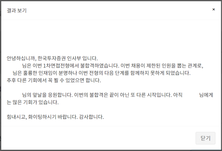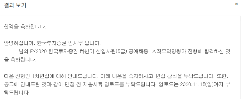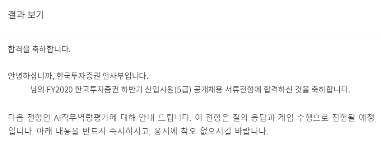 서류는 문제 없었다. 몇개기업은 항상 서류에 큰 자신감이 있었는데, 그 중 하나가 한국투자증권이었고, 아마 그 자신감의 바탕엔 합격해본 과거가 있기 때문이라 생각한다. (그러니 취준생 여러분, 일단 합격 데이터를 만들기 위해 노력해야합니다!, 긴 과정에서 지치지 않기 위해 자신감이 필요하니까요!)