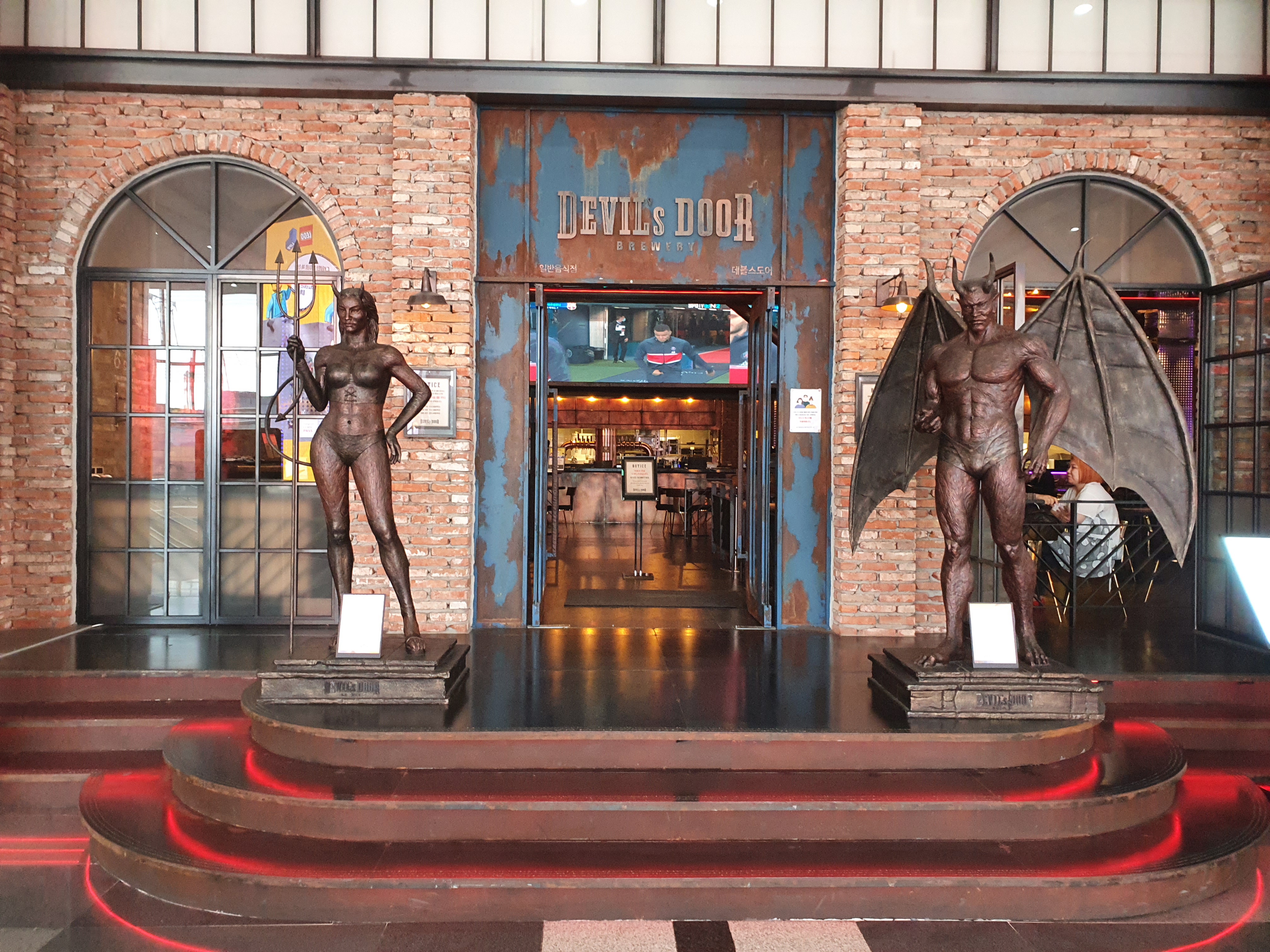 입구엔 여자 악마가 왼쪽에, 남자 악마가 오른쪽에서