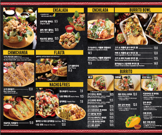 타코, 부리또, 퀘사디아 등 다양한 메뉴가 기다리고 있어서
