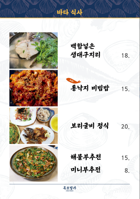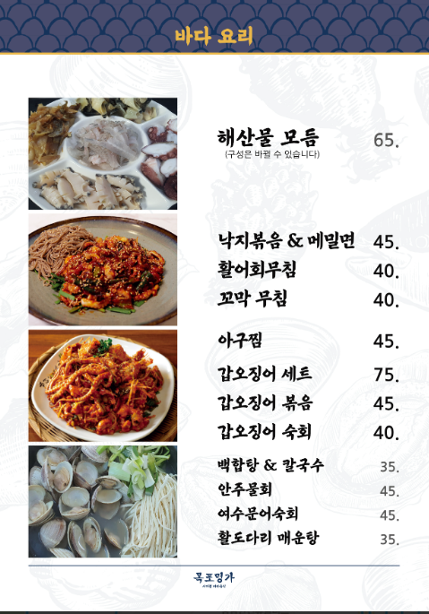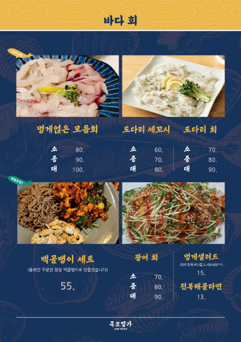 내가 좋아하는 회덮밥, 꼬막비빔밥, 무침, 낙지볶음 등이 눈에 띈다.