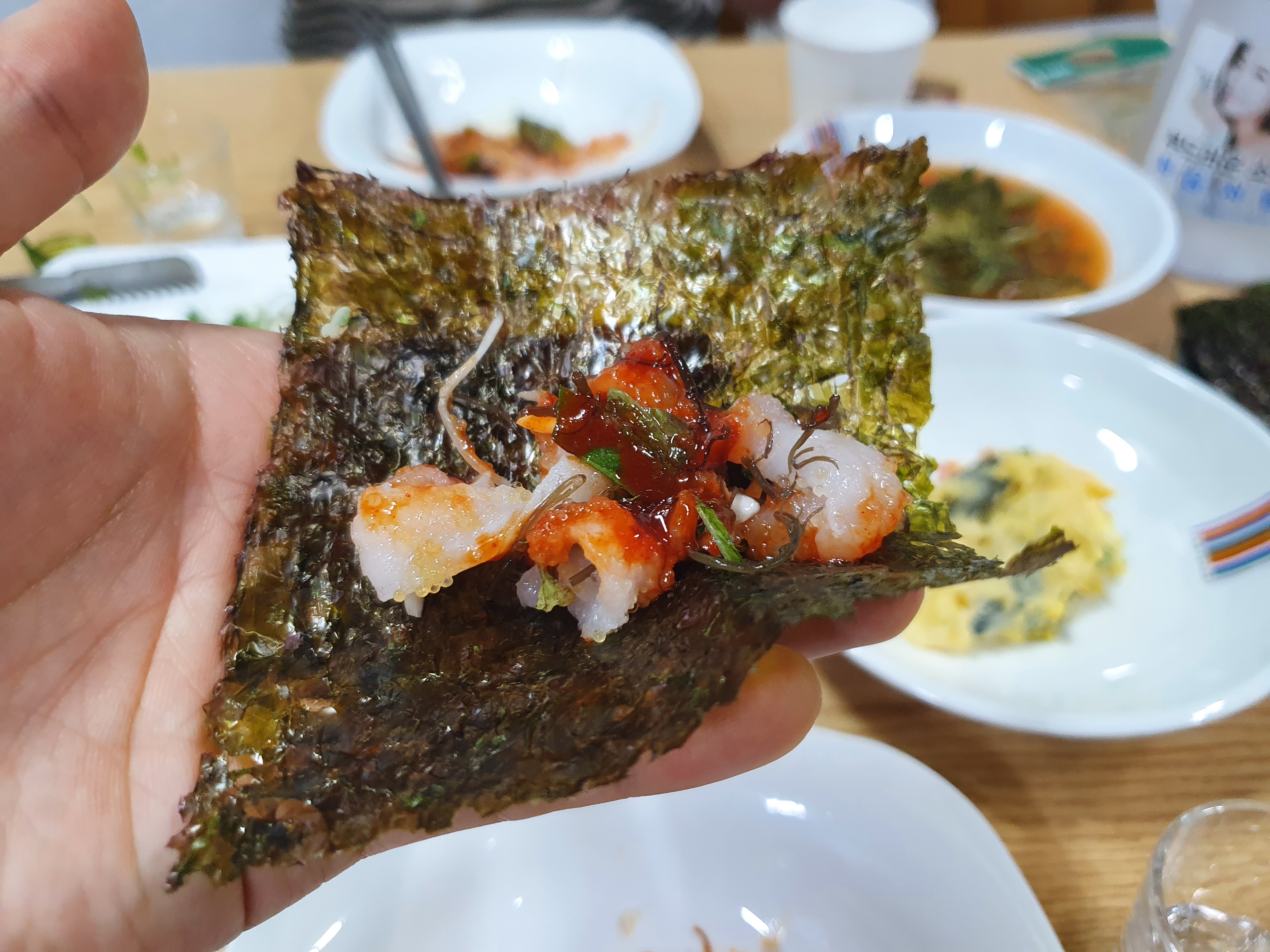 김의 강한 향이 회의 고소함을 순간 없애버리지만,