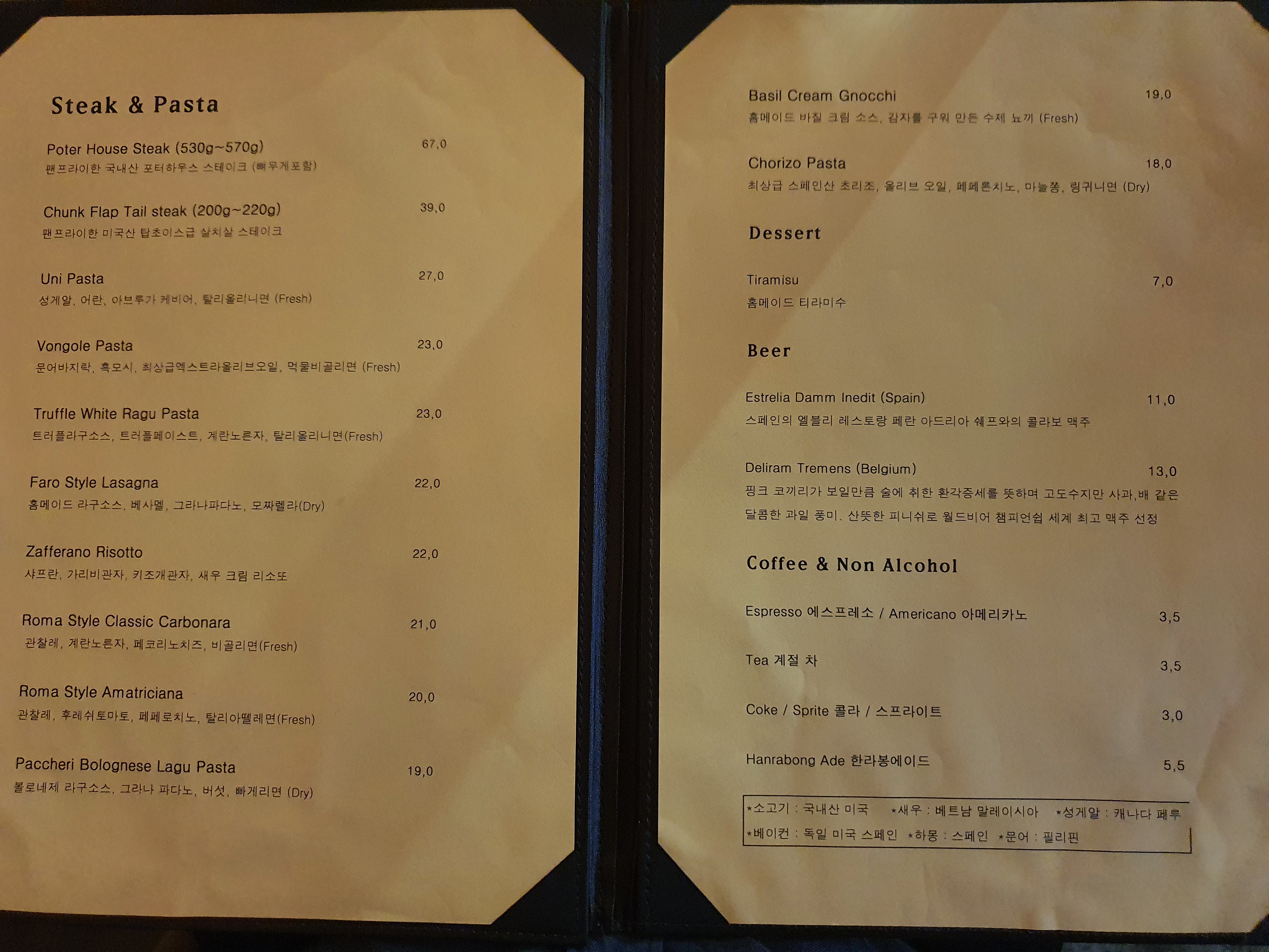 우리는 스테이크, 파스타, 그리고 바질크림 뇨끼