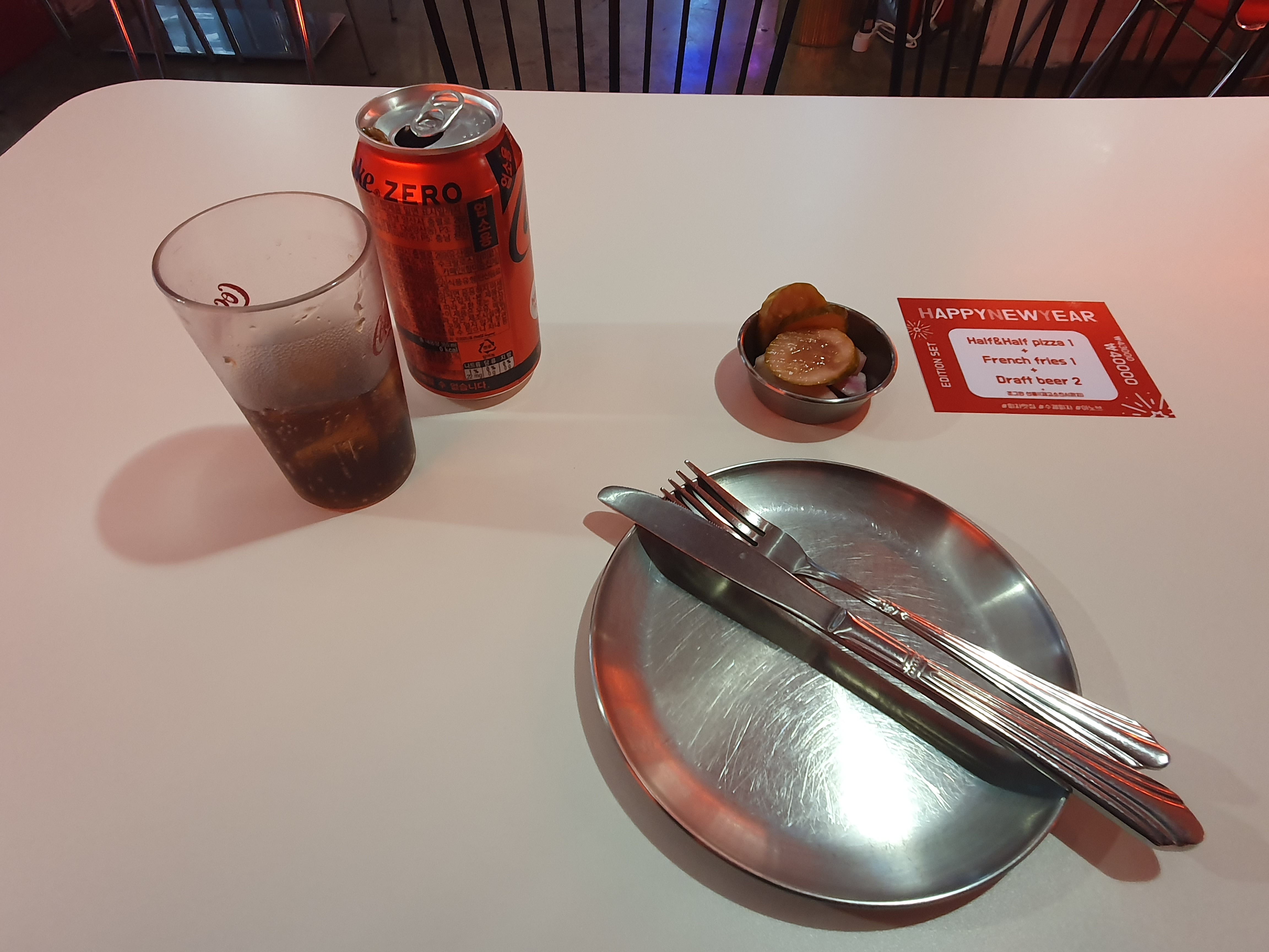나는 베이컨하와이안 피자와 제로콜라를 주문했다.