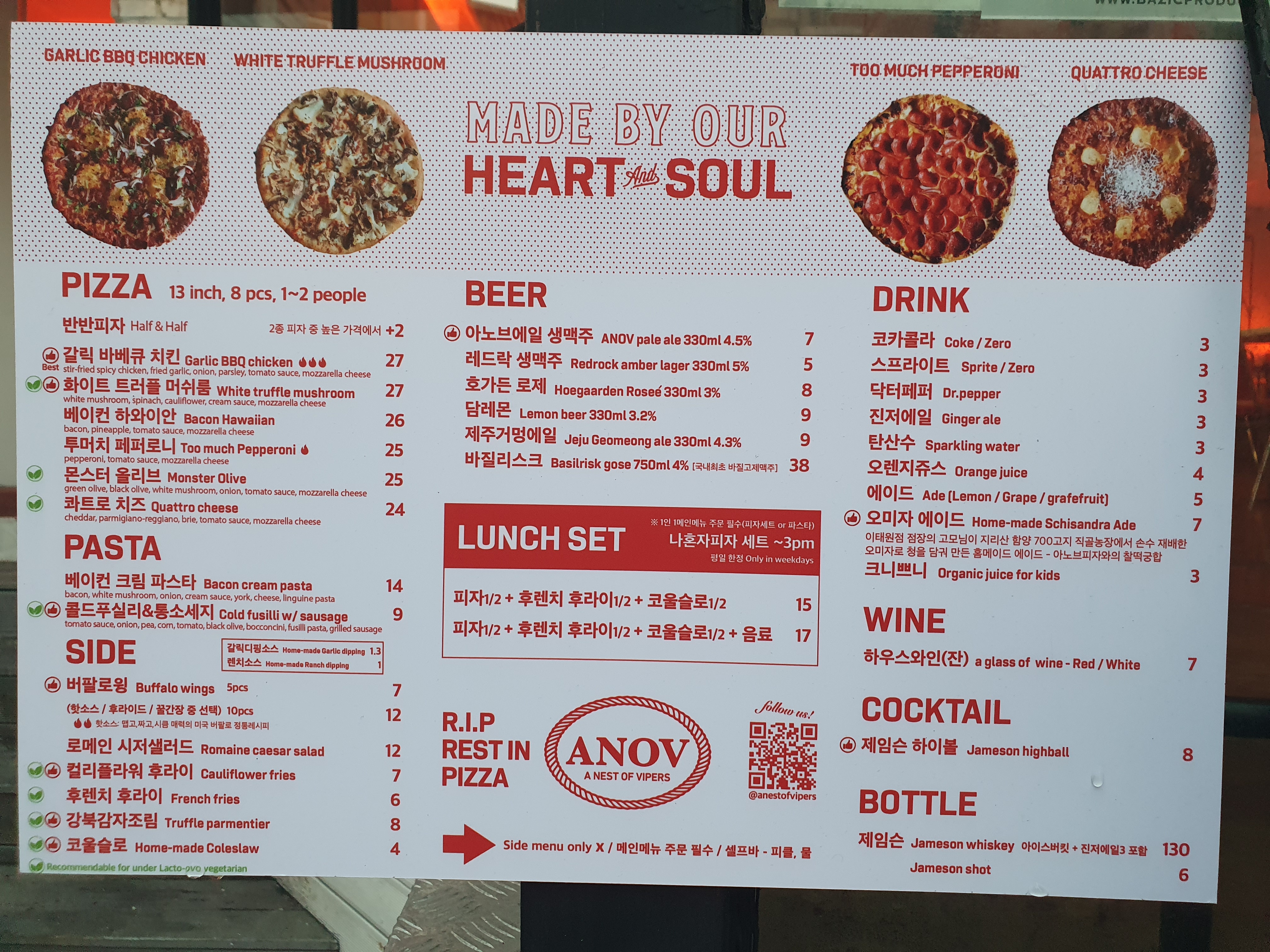 이태원 아노브 피자 메뉴
