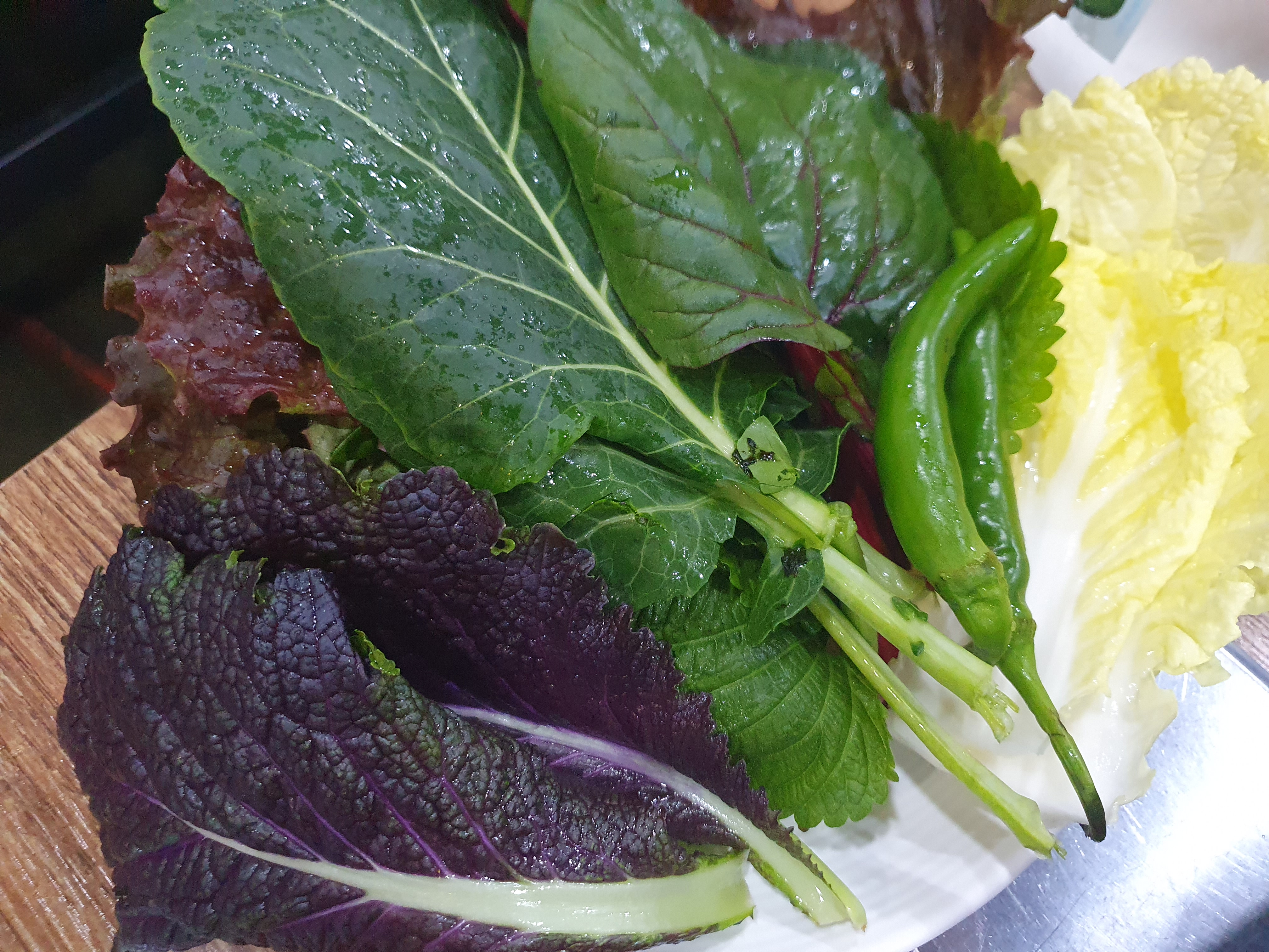 바로 신선한 쌈야채이다. 여러 야채가 나오고,