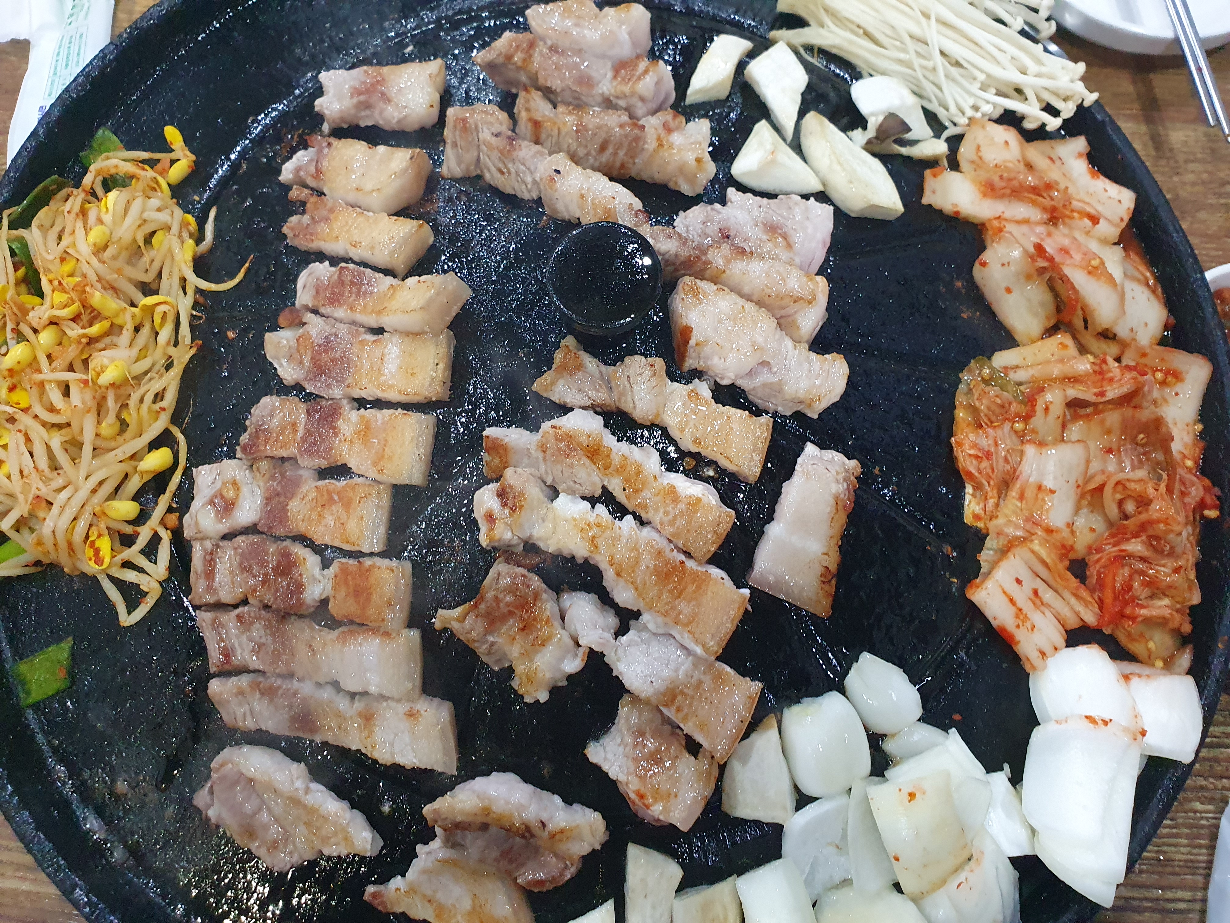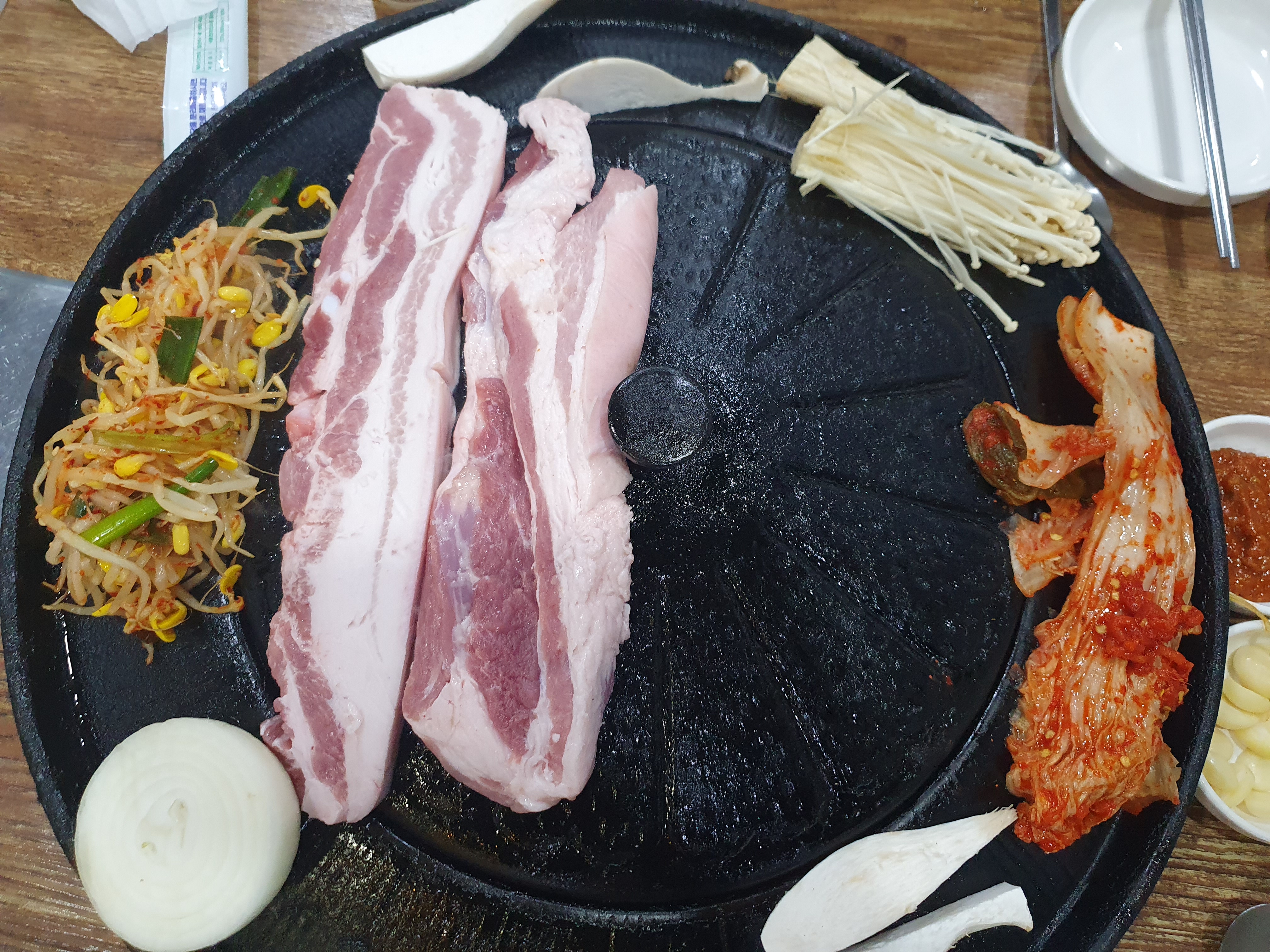맛있는 솥뚜껑 삼겹살 집이 있어 소개한다.