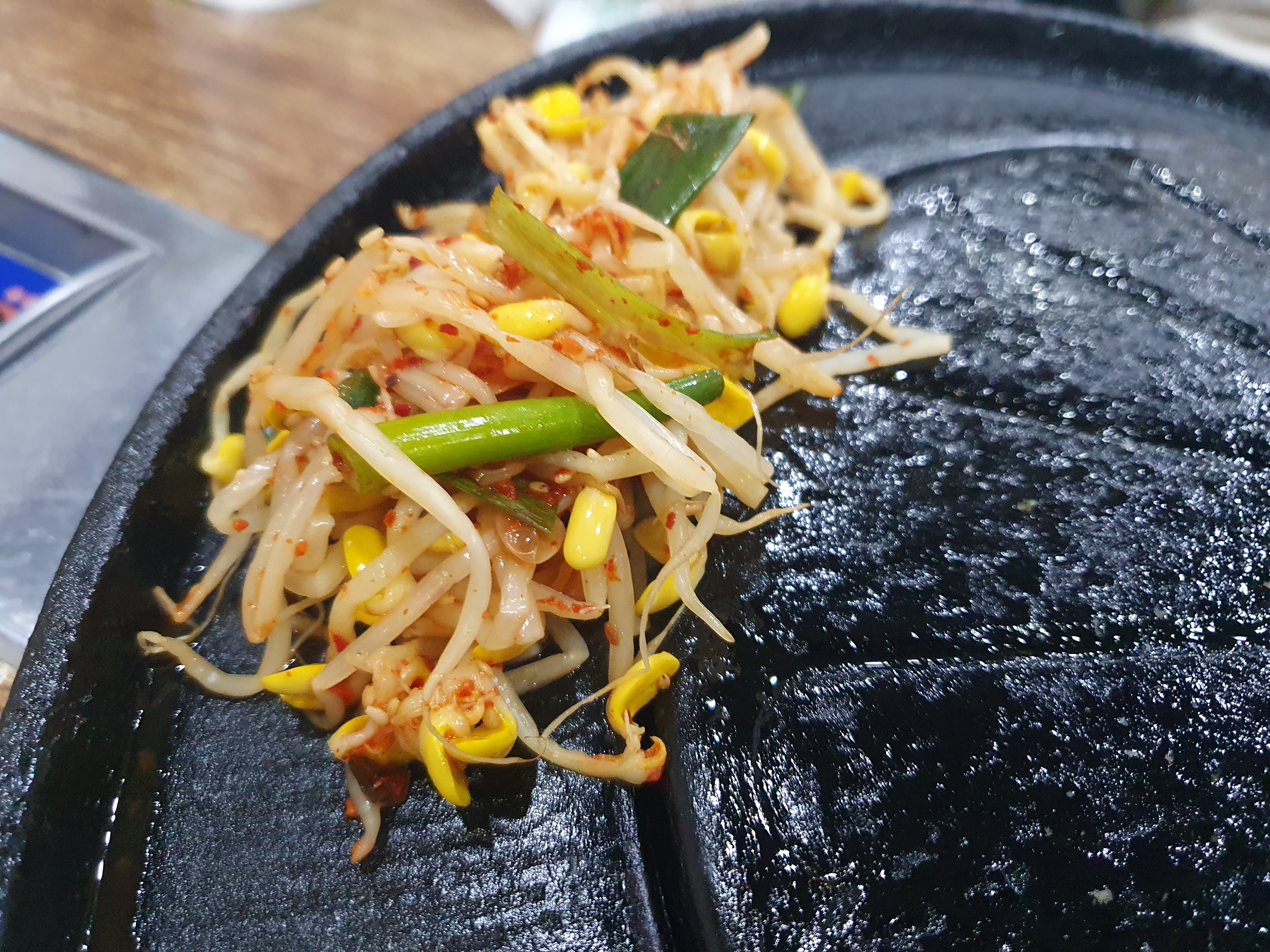 콩나물과 묵은지가 양 사이드에 올라간다.