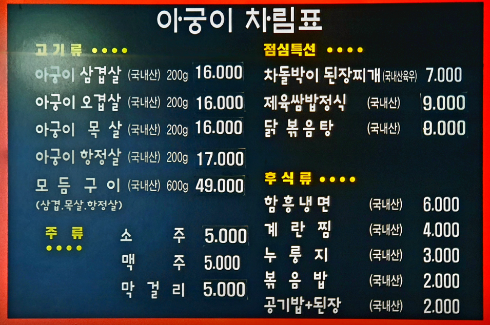 아 추가로 아궁이 묵은지 삽겹살집의 특이점이 또 있는데,