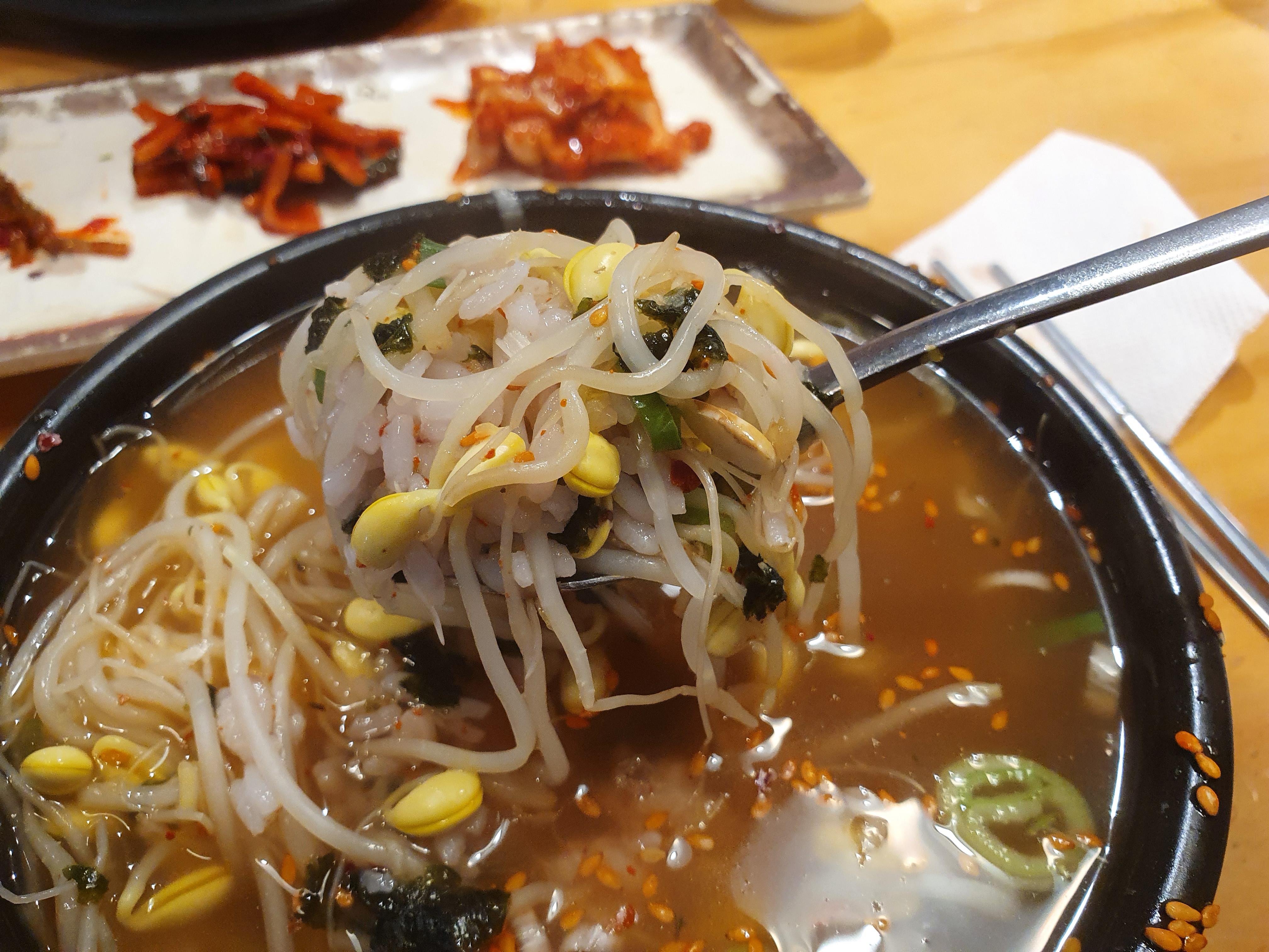 여기에 콩나물국밥을 덜어 함께 먹는건데,