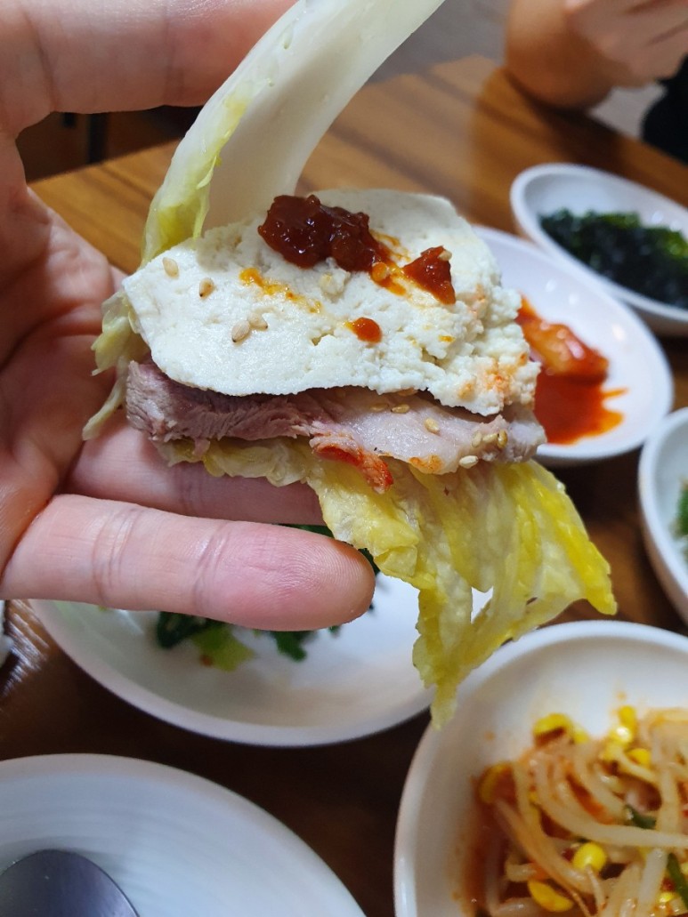 우린 배가 너무 고파서 두부보쌈 중자를 주문했다.