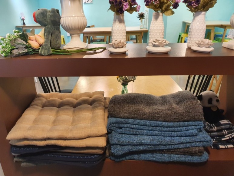 여성분들을 위한 방석과 담요도 많이 준비되어 있다.