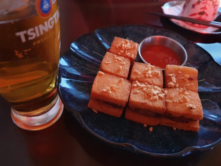 친구와 둘이 와서 멘보샤와 몽골리안비프, 그리고 마카오 맥주를 주문했다.