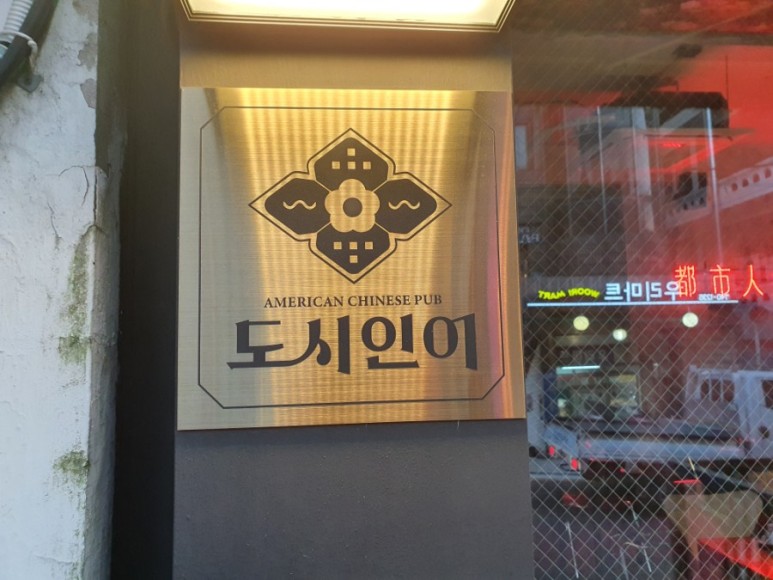 외부에 큰 간판은 따로 없고, 문 옆에 아메리칸차이니즈 펍, '도시인어'라구 작은 명패가 달려있다.