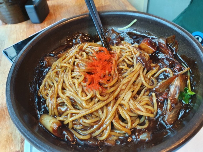 우리는 전형적인 짜장면, 짬뽕, 탕수육을 주문했다.