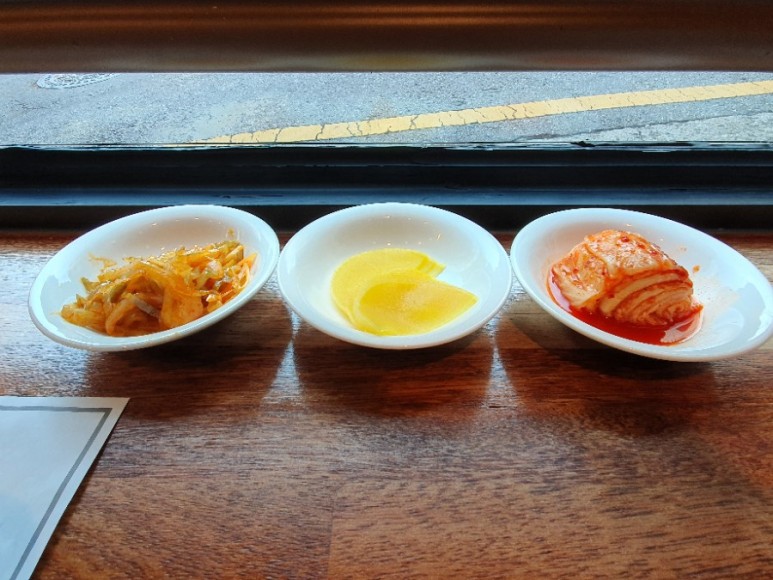 그리고 주무닝 완료되면 밑반찬이 나온다.