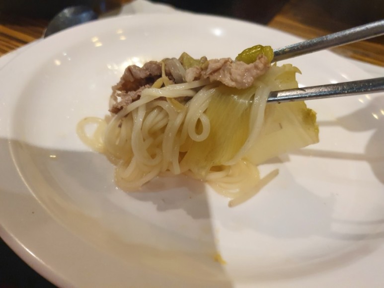국물을 잔뜩 머금은 국수와 함께 고기를 먹어주면,