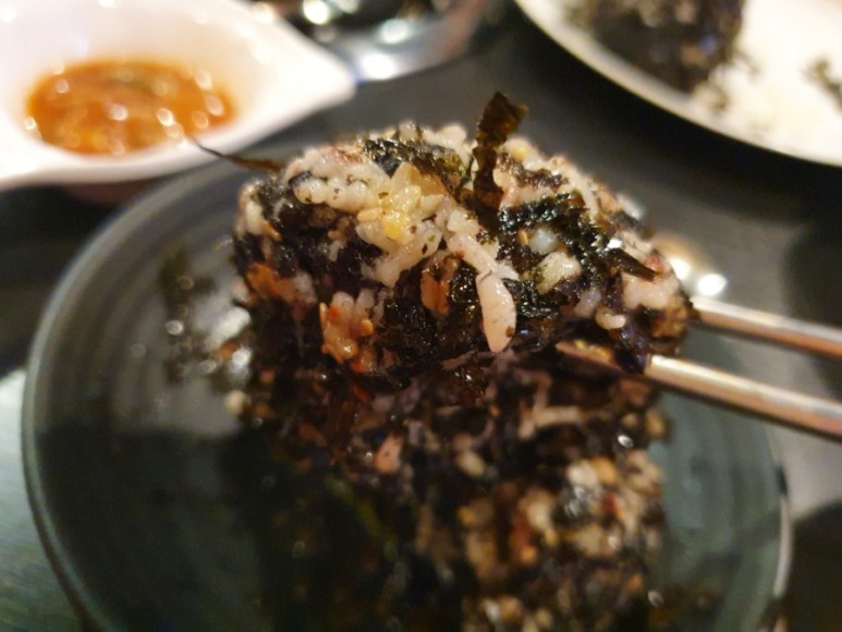 신기한게, 고기가 그렇게 들어가 배가 찼는데도 주먹밥이 들어간다.