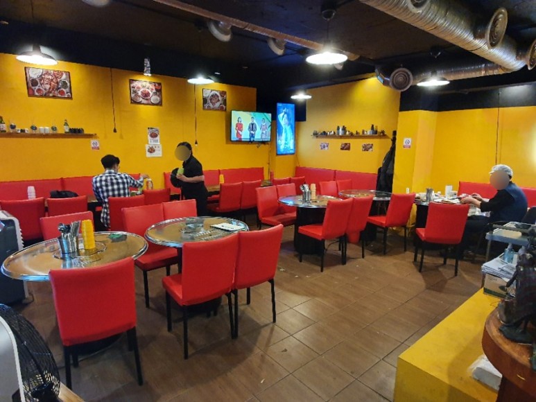 계단을 따라 주욱 내려가면 깔끔한 식당 내부가 모습을 비춘다.