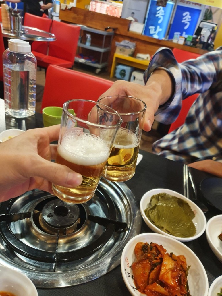 이제 소맥이 아닌 소주로 본격적으로 적셔준다.