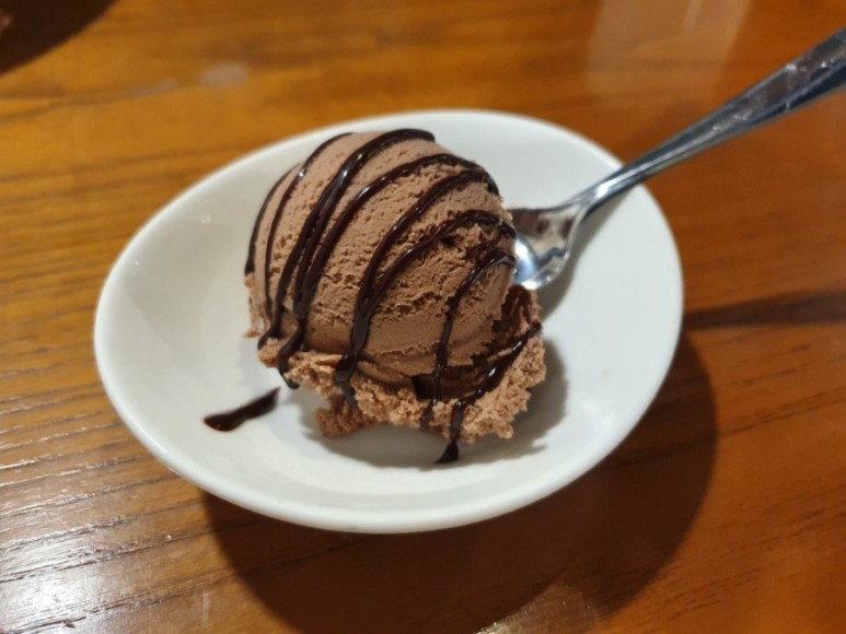 후식으로는 초코 아이스크림과 따뜻한 아메리카노가 나왔다. 달달한 아이스크림과 쓰고 고소한 커피의 어울림은 정말 좋았다. 항상 느끼는 거지만, 스테이크는 결국 느끼함을 가져오는데, 후에 먹는 아이스크림이 그 느끼함을 잡아주면서 식사의 마무리를 상쾌하게 바꿔준다.