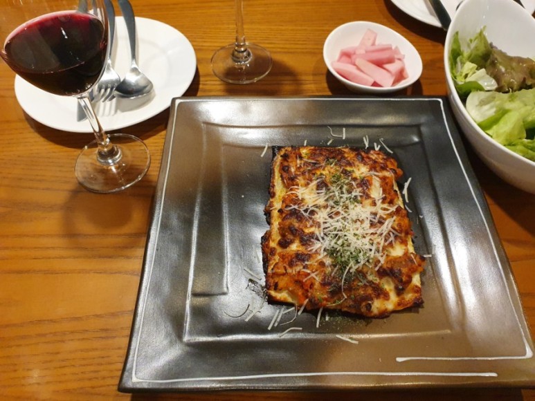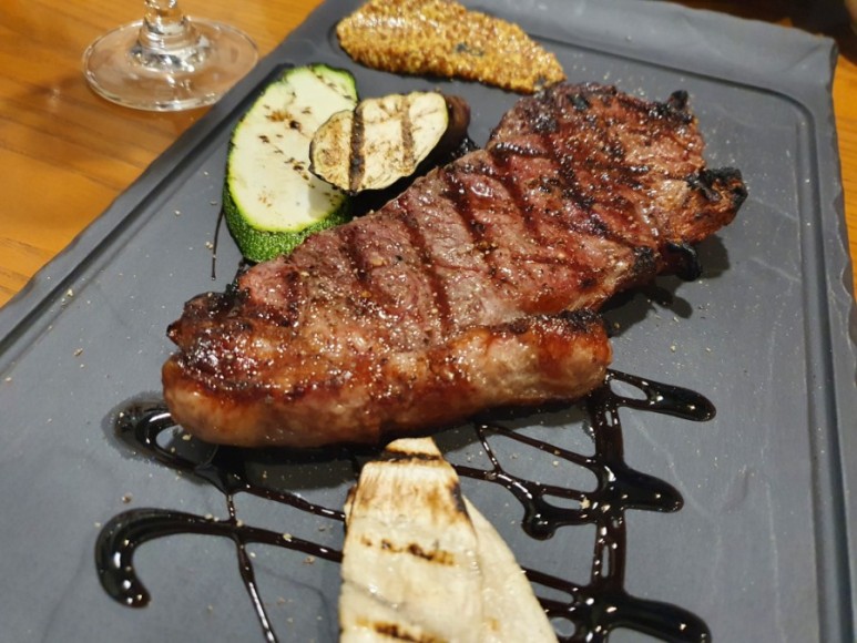 먼저 라자냐를 소개해본다. 볼로네제 라자냐는 원래 선택지에 없었던 메뉴였다. 하지만 메뉴판을 보고, 파스타와 스테이크의 조합은 질리는 맛이 있으니, 하나 새로운걸 추가해서 먹어보자라고 얘기 했다. 때문에 선택한 라자냐는 내부 재료의 육즙, 소스가 흘러나오지 않고 잘 보존된 맛이었다. 에피타이저로 훌륭하고 좋은 선택이었다.