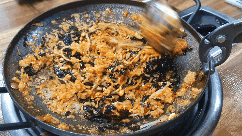 어느정도 불판에 익혀주다가 김도 슥 비벼주면 완성!