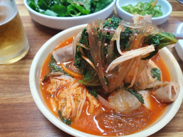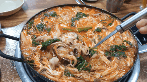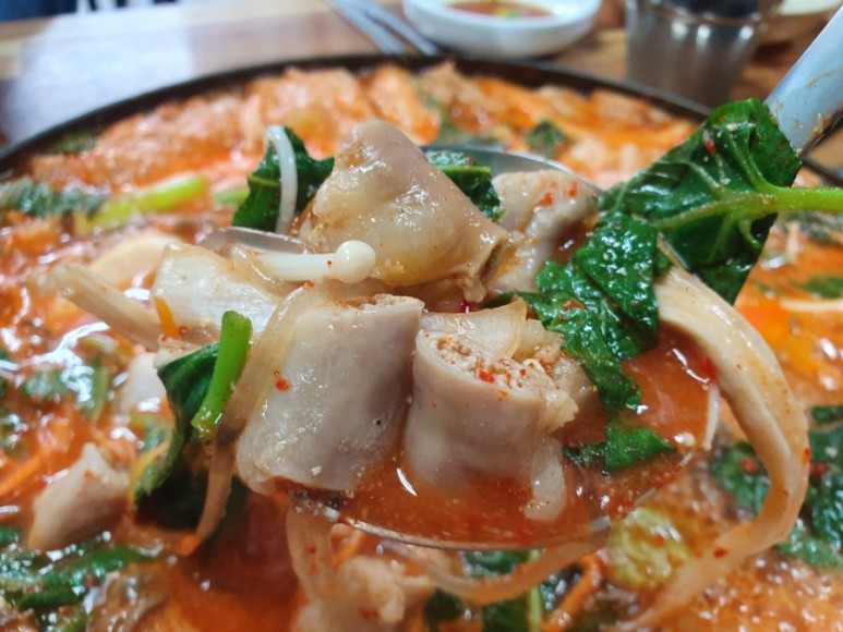 술을 부르는 맛있는 소곱창전골을 파는 가게가 있다.