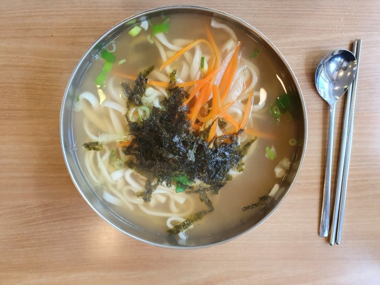 국물이 맑은 국물 모습을 띄고 있고, 면은 굵은 면이다.