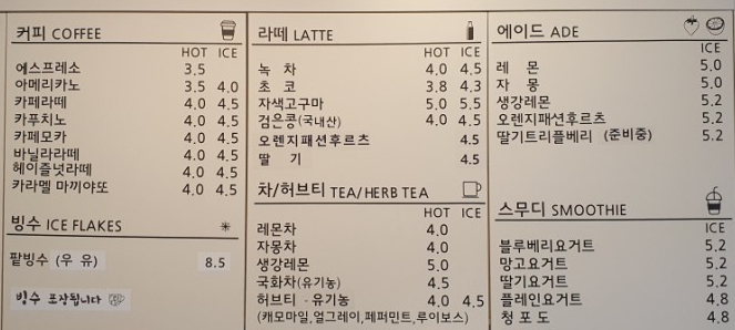 그 외에 토스트, 조각케잌 등을 디저트로 판매하고 있다.