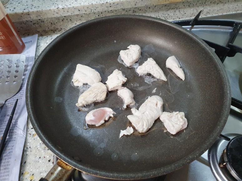 팔팔팔팔 끓여서 속까지 닭가슴살을 익혀줬다면,