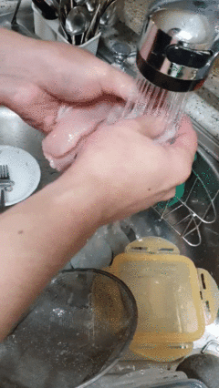 먼저 생닭가슴살을 흐르는 물에 씻겨준다.