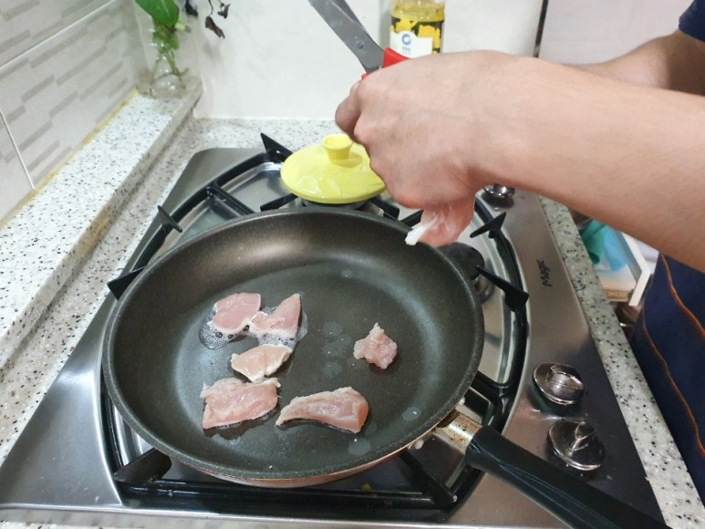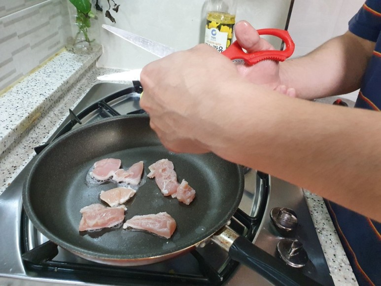 이런 간단한 요리는 칼보다 가위가 편리하다.