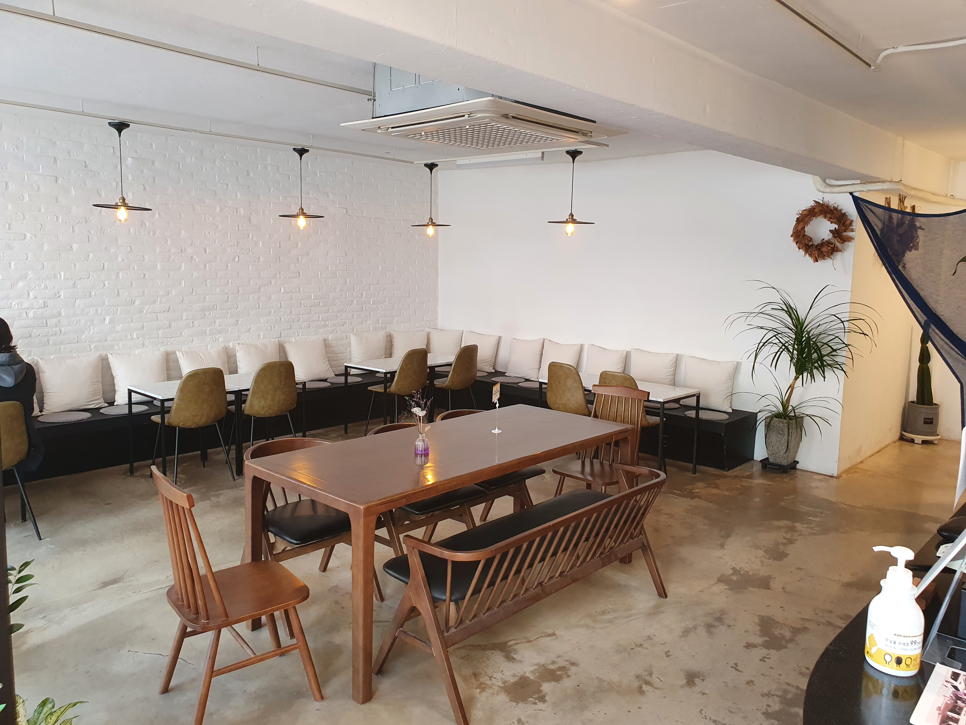 자리도 많고 깔끔한 무채색 인테리어이다.