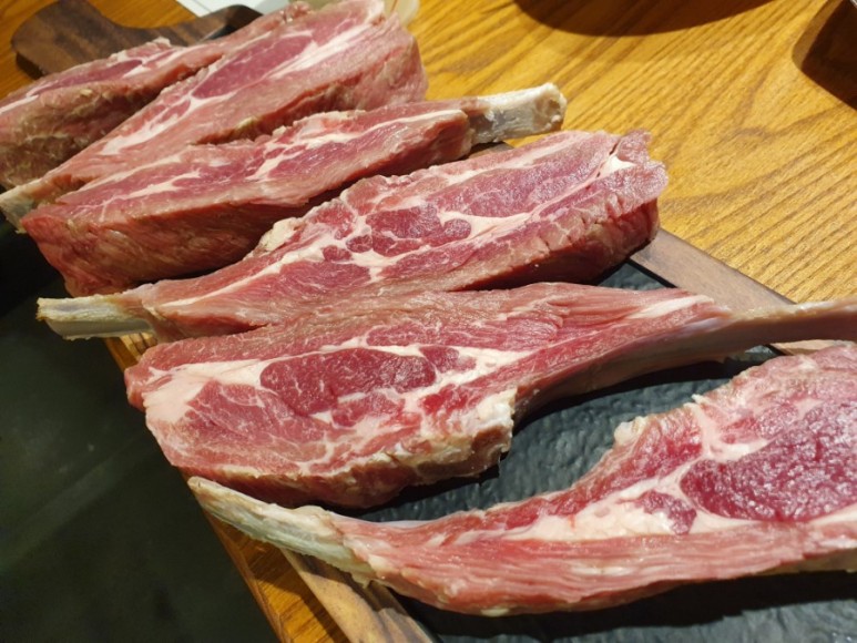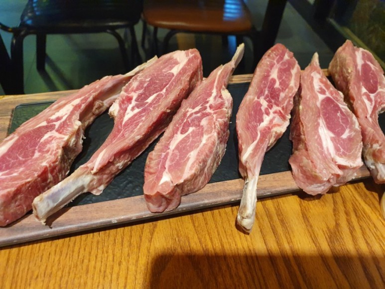 양갈비는 1인분에 3덩이가 나온다. 양꼬치 집에서도 양갈비를 주문해 먹는 나는, 이 6덩이가 얼마나 합리적인 가격으로 책정되어 있는지 잘 알 수 있었다. 비싸단 생각이 전혀 안들정도로 고기 질도 좋았다.