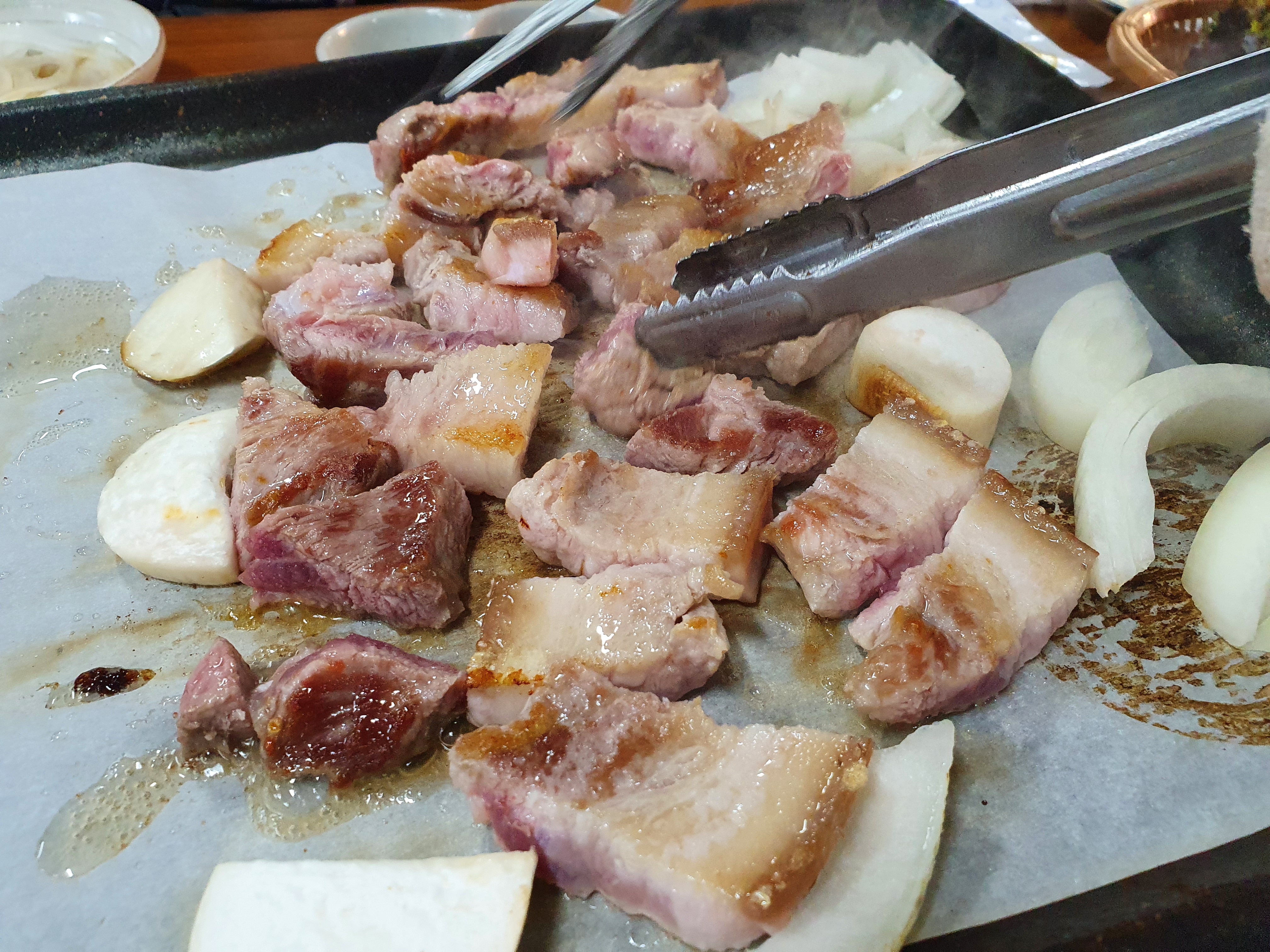 그리고 구워지는 삼겹살..!