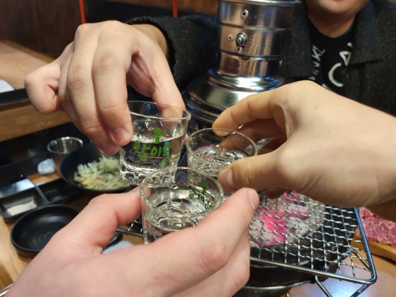기름기 가득한 질 좋은 소고기는 소주와 참 잘 어울린다. 사실 고량주가 땡기기도 했는데, 소고기가 맛있다 보니 천천히 취하고 싶어서였을까, 한점에 한잔, 한점에 한잔 이런식으로 먹는게 또 좋았다.