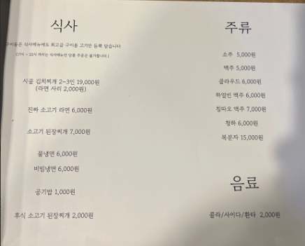 돈에 큰 여유가 없는 사회초년생이 소고기집에서 무슨 고민을 하면서 주문을 할까... 싼거 시켜야지 하고 메뉴판을 보고 있었는데.. 선배가 냅다 한우 소한마리를 주문했다. '아니 괜찮아요 형?' 하고 물어봤으나... 먹을거에 언제나 진심인 선배를 막을 수 없었다. 술은 진로 소주로 주문했다.